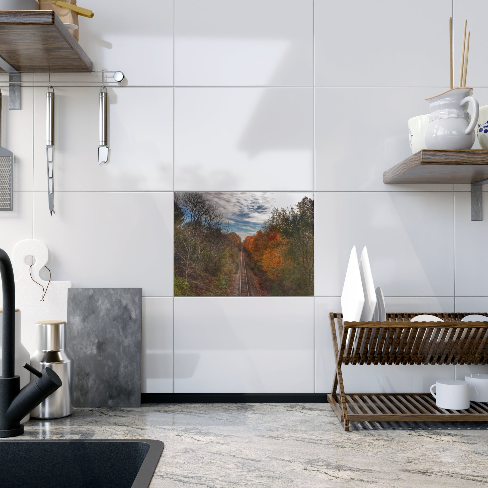 U R There Photography Above the Tracks in Vassar Rustic Farmhouse Decorative Ceramic Tile