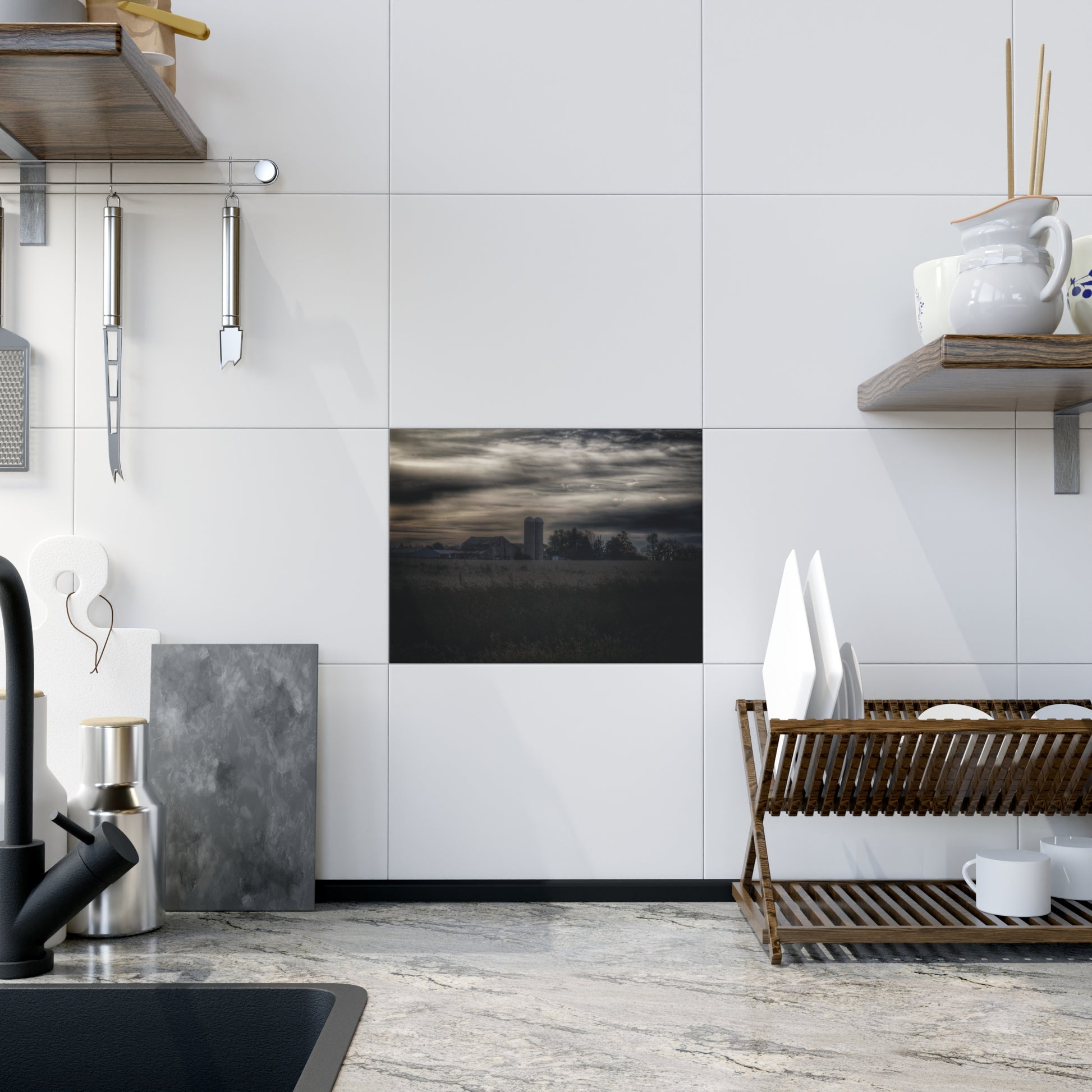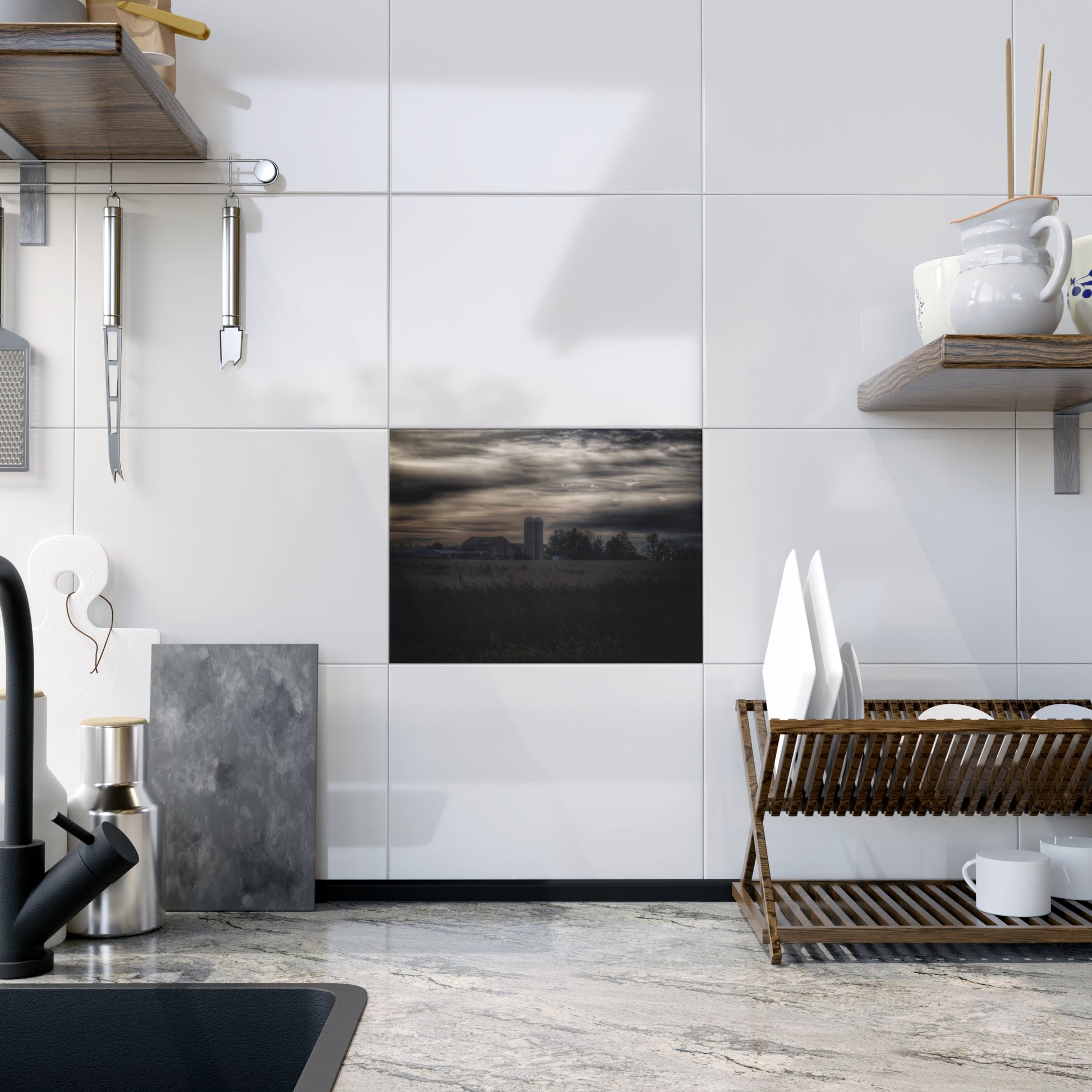 U R There Photography Across the Field on Brown City Road Rustic Farmhouse Decorative Ceramic Tile