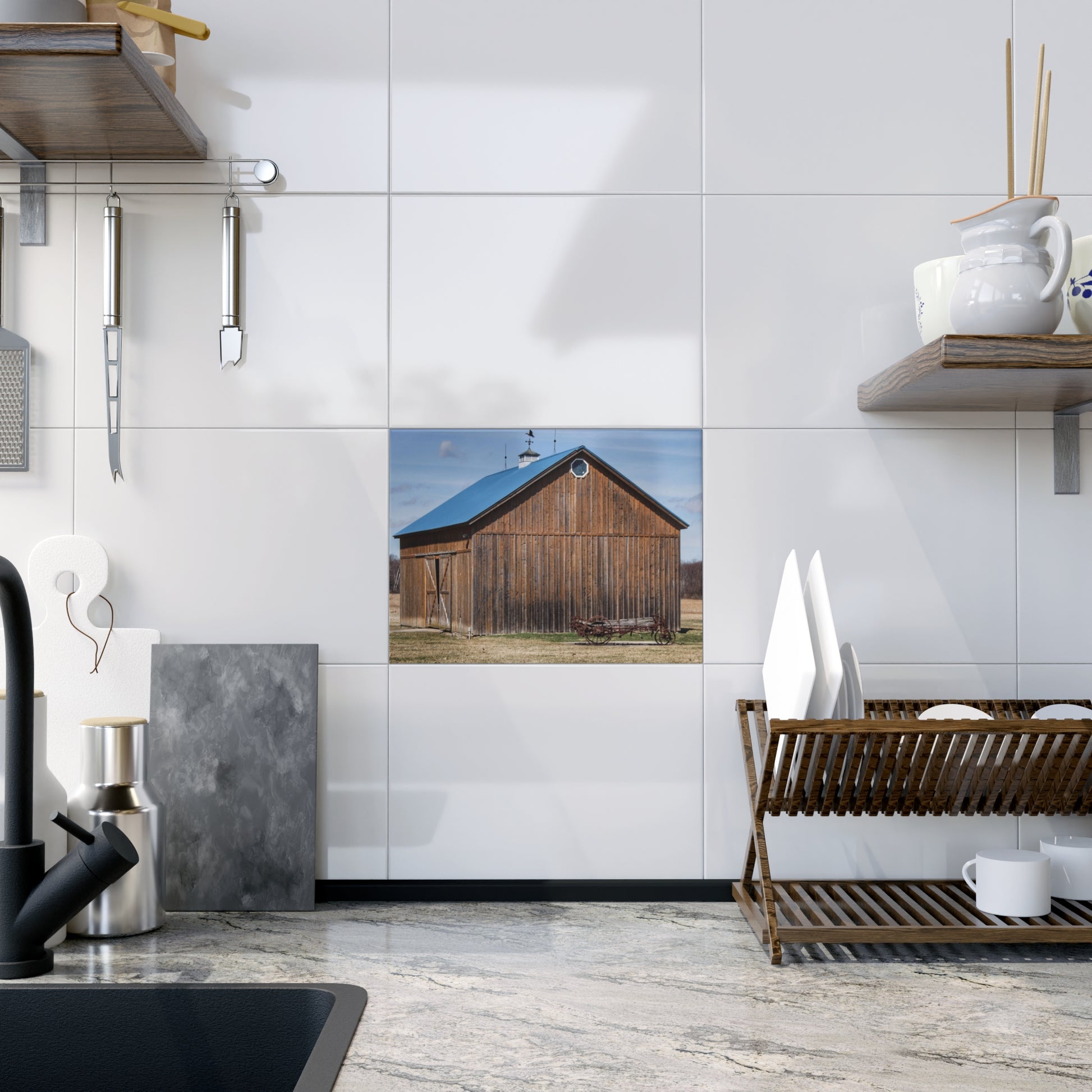 Elevate your home décor with these exquisite ceramic photo tiles featuring U R There Photography's MI Eye on the Thumb Series. Each 6" x 8" tile is a perfect blend of artistry and craftsmanship, offering full-color reproduction that brings every detail of these stunning barns to life. Choose between a glossy or matte finish to match your style and enjoy vibrant, crisp colors that capture the essence of Michigan's Thumb region.