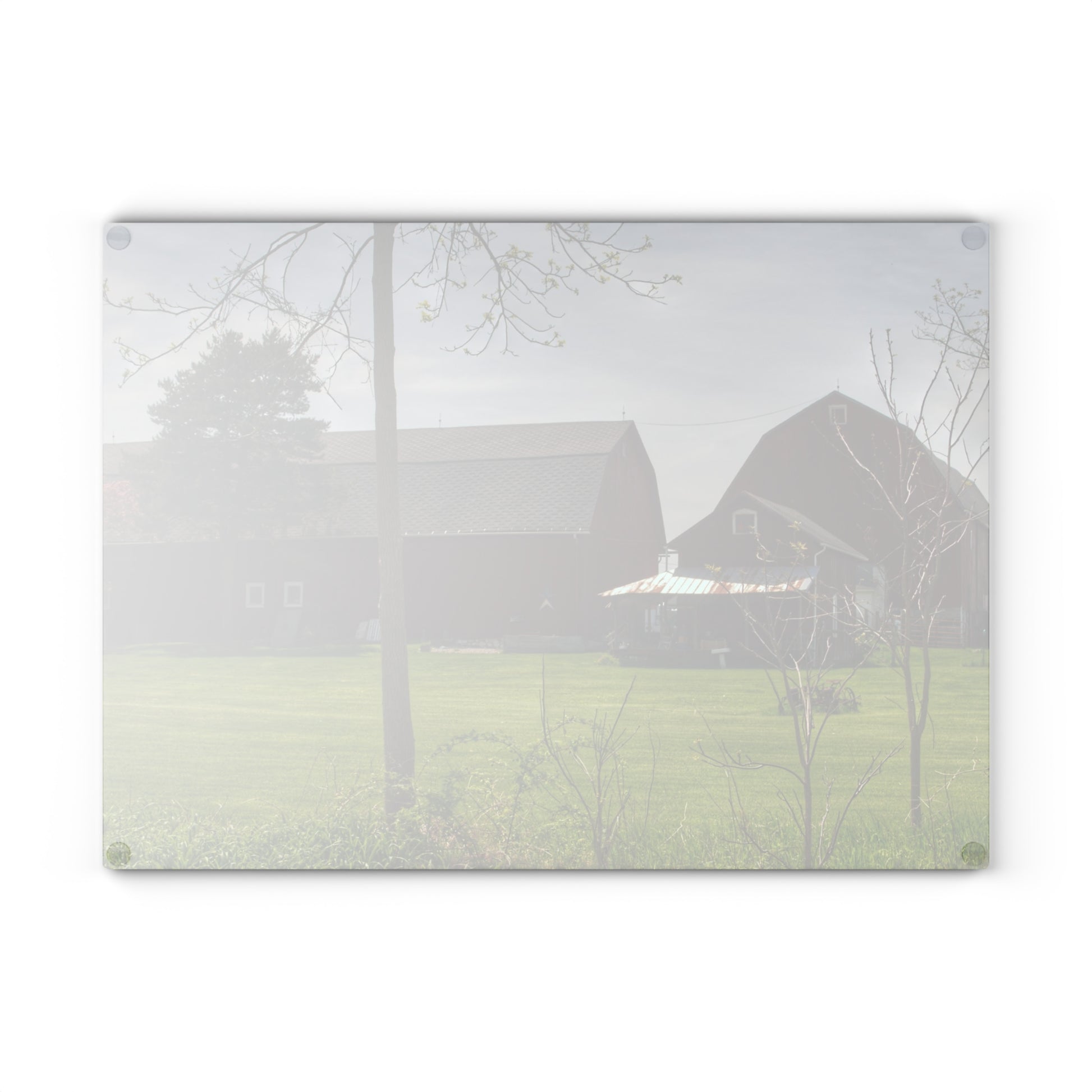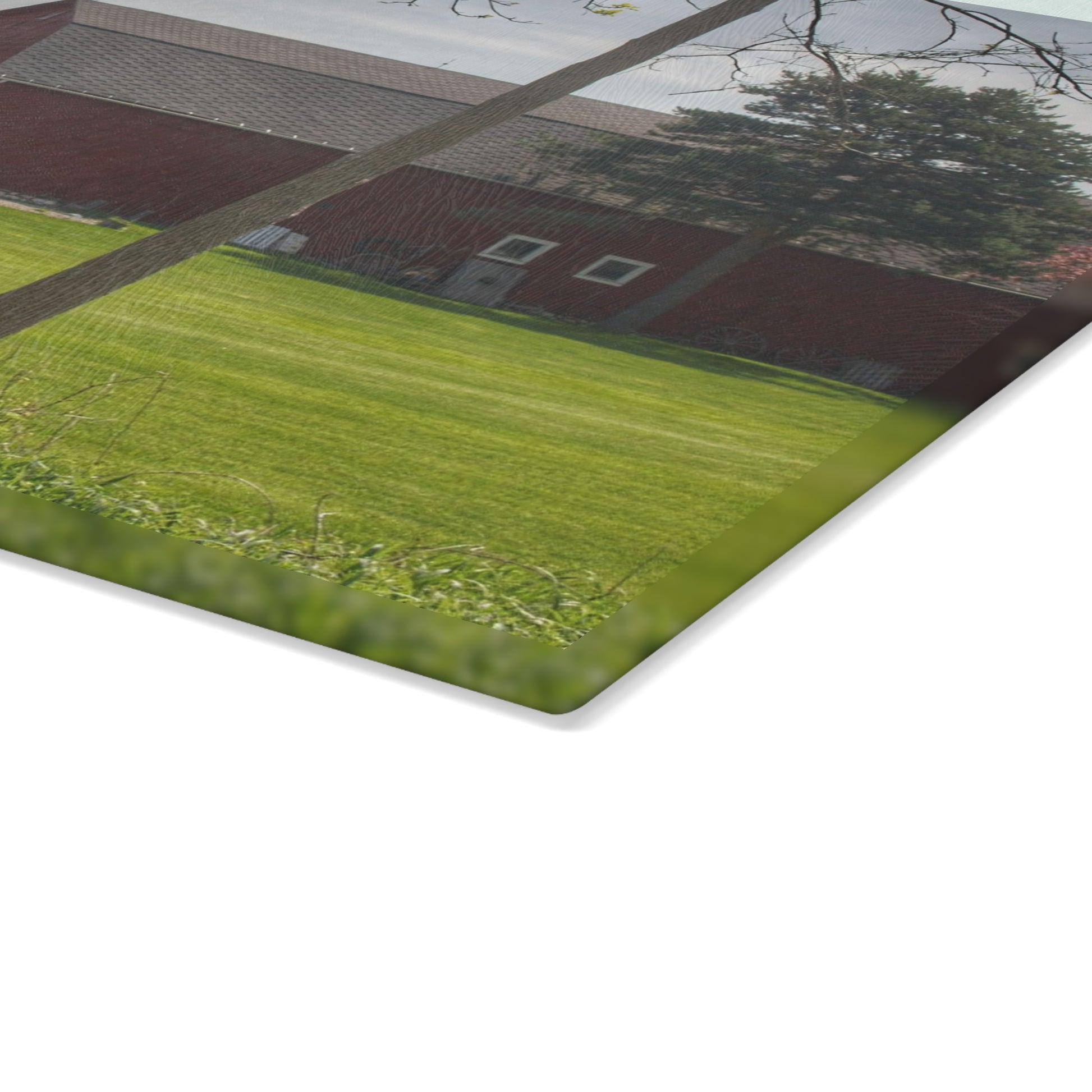 U R There Photography Bishop Road Reds I Rustic Farmhouse Tempered-Glass Cutting Board 8"x 11"