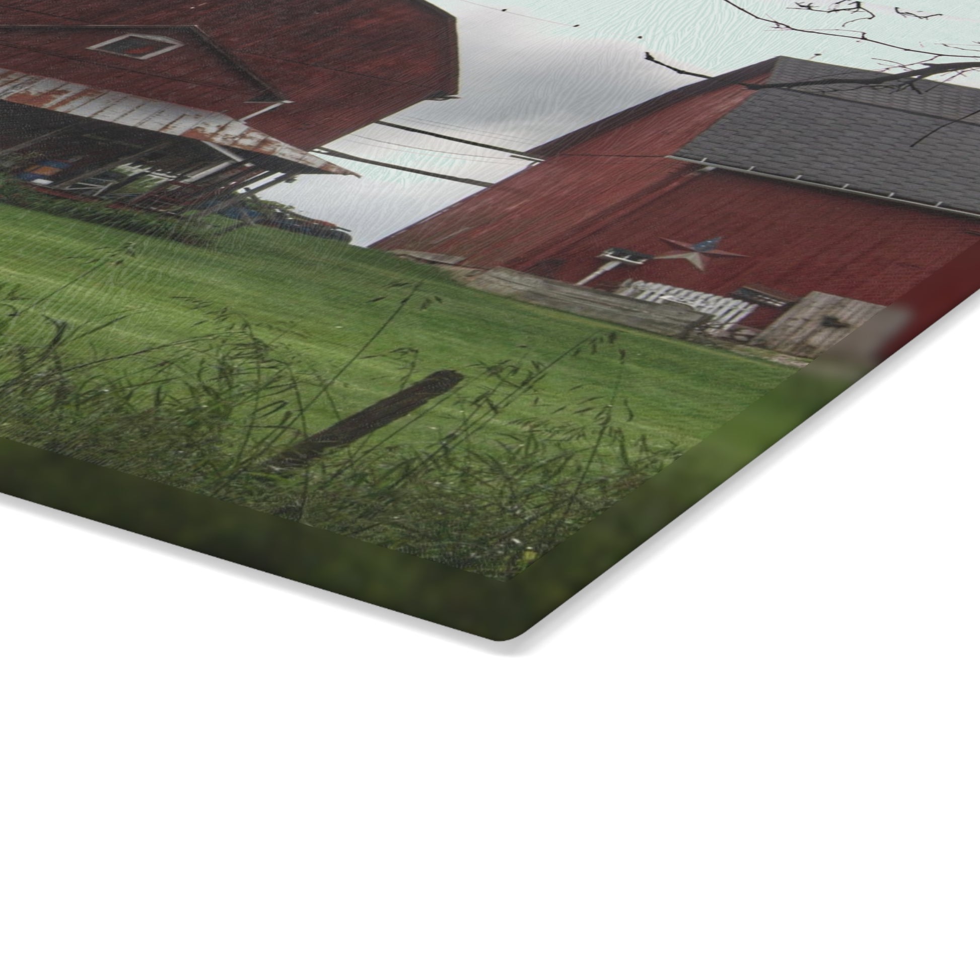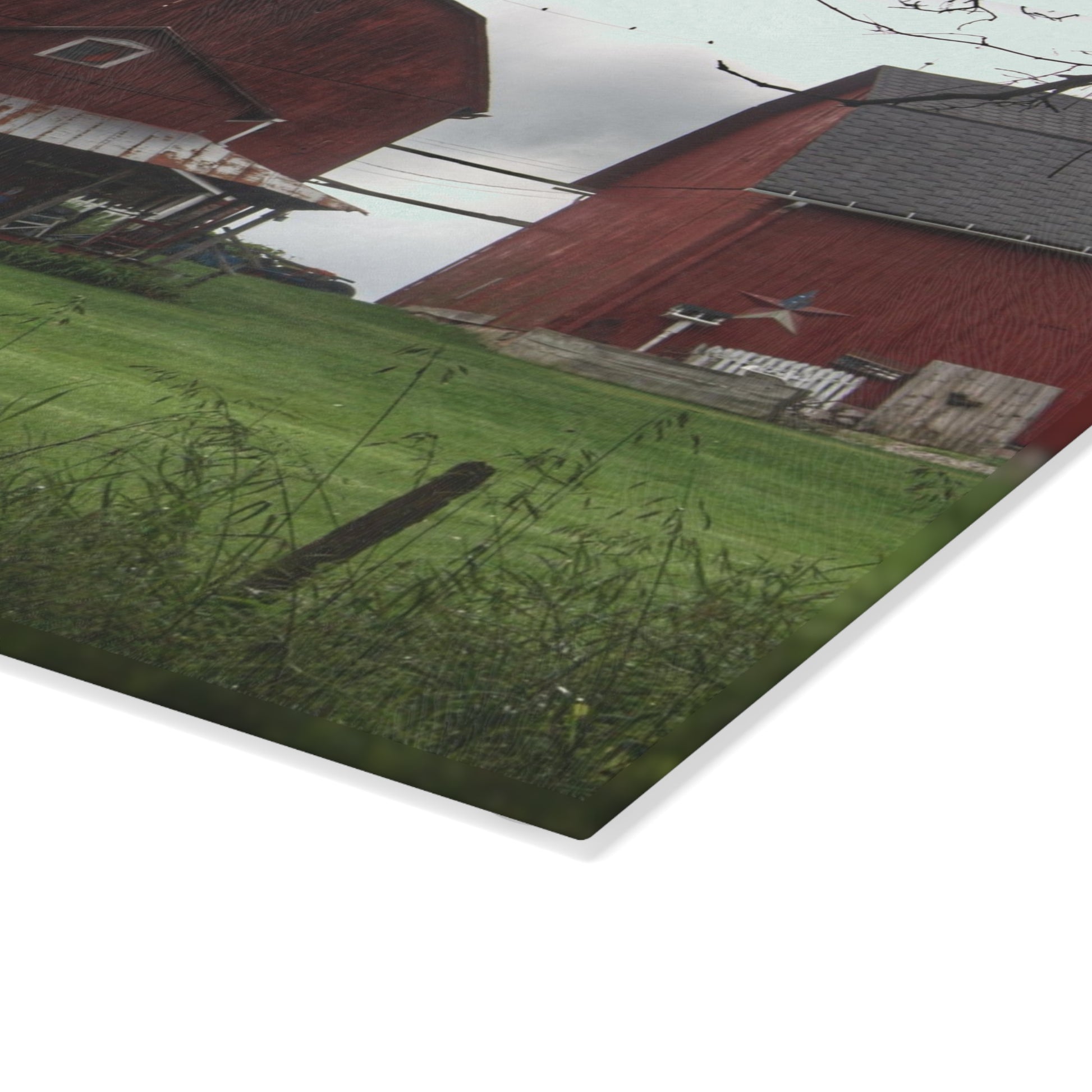 U R There Photography Bishop Road Reds II Rustic Farmhouse Tempered-Glass Cutting Board 8"x 11"