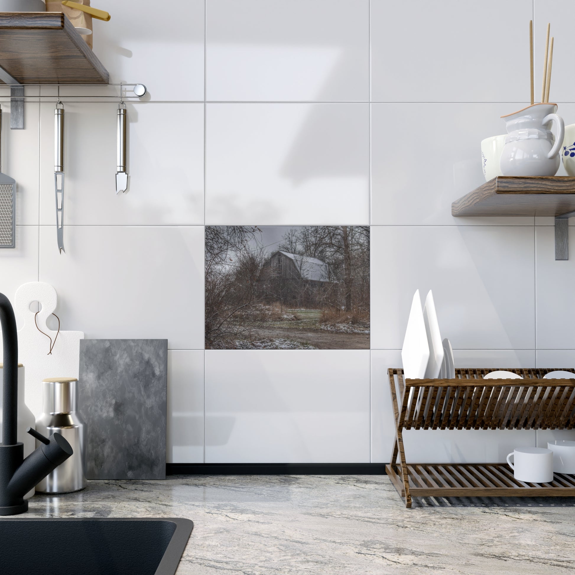 U R There Photography Bishop Road Winter Grey Rustic Farmhouse Decorative Ceramic Tile