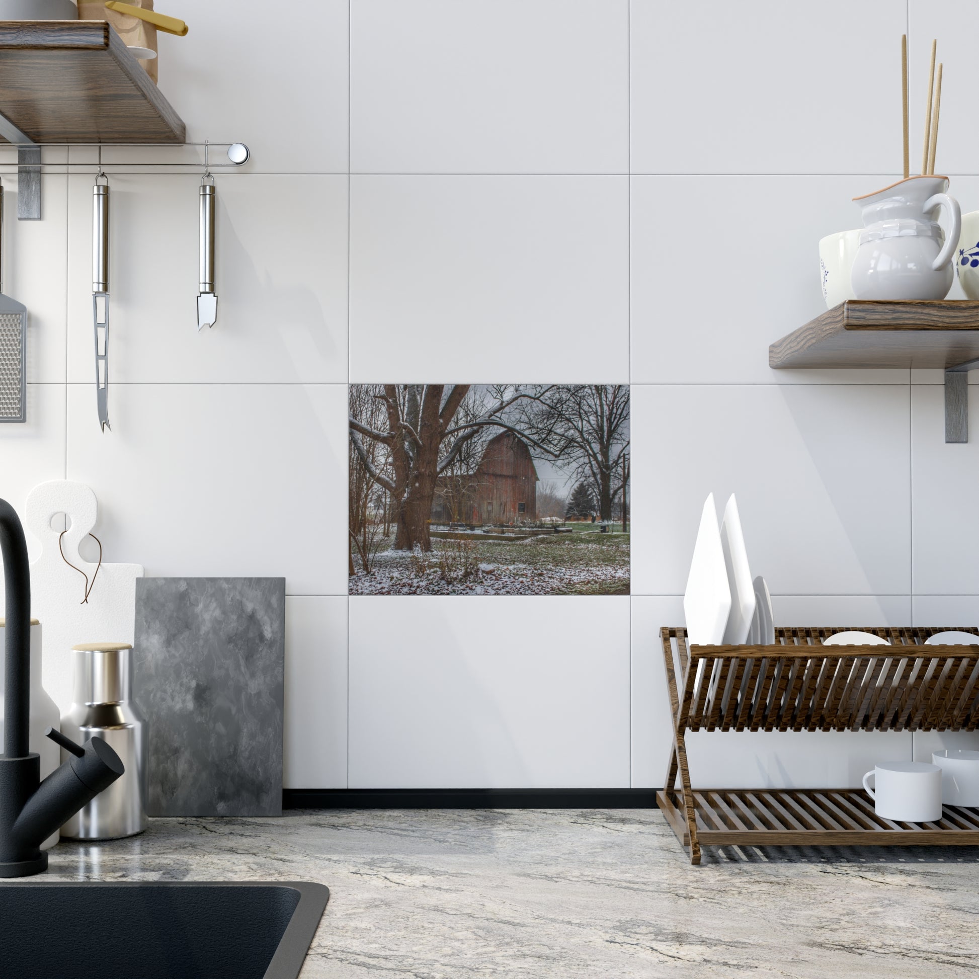 U R There Photography Bishop Road Winter Red Rustic Farmhouse Decorative Ceramic Tile