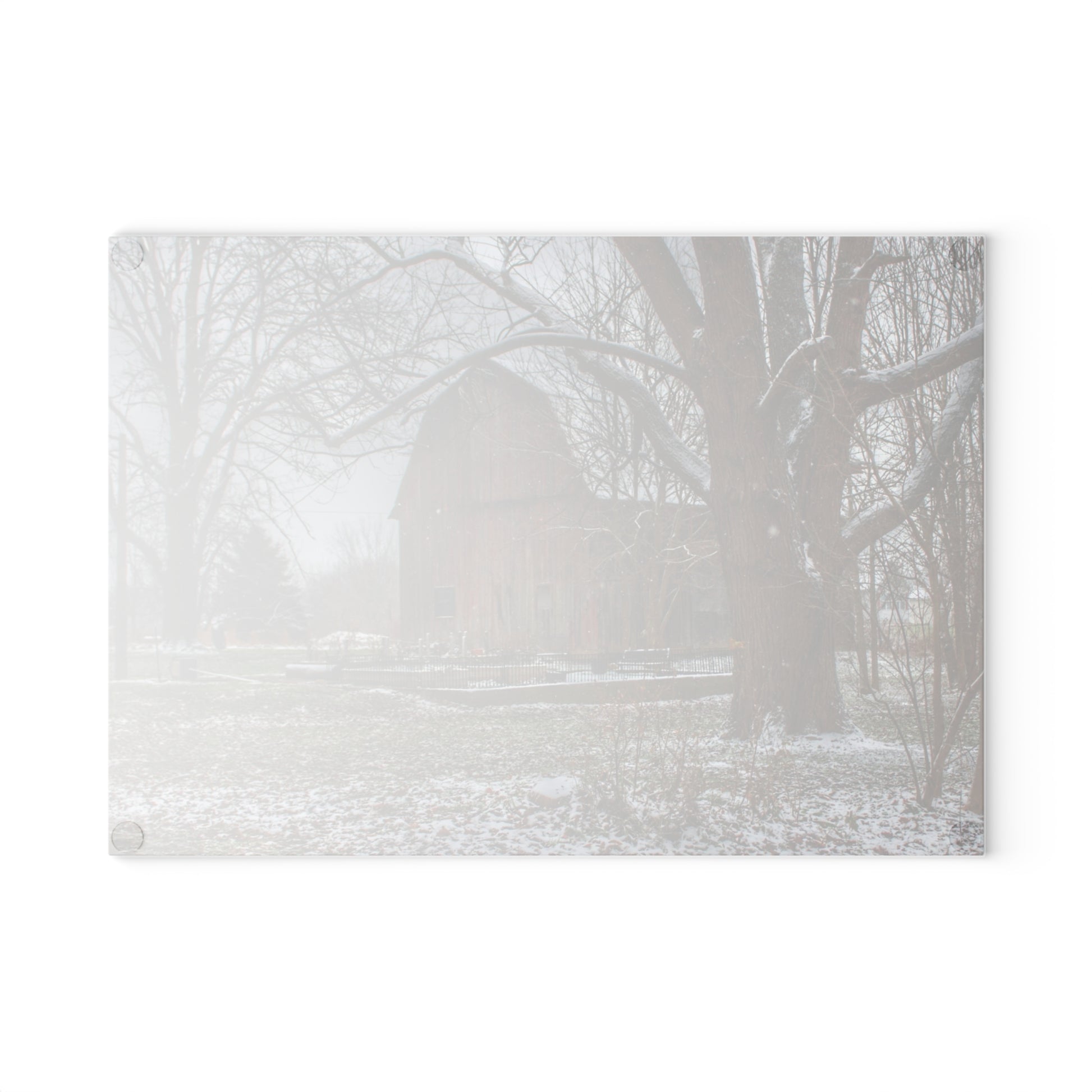 U R There Photography Bishop Road Winter Red Rustic Farmhouse Tempered-Glass Cutting Board