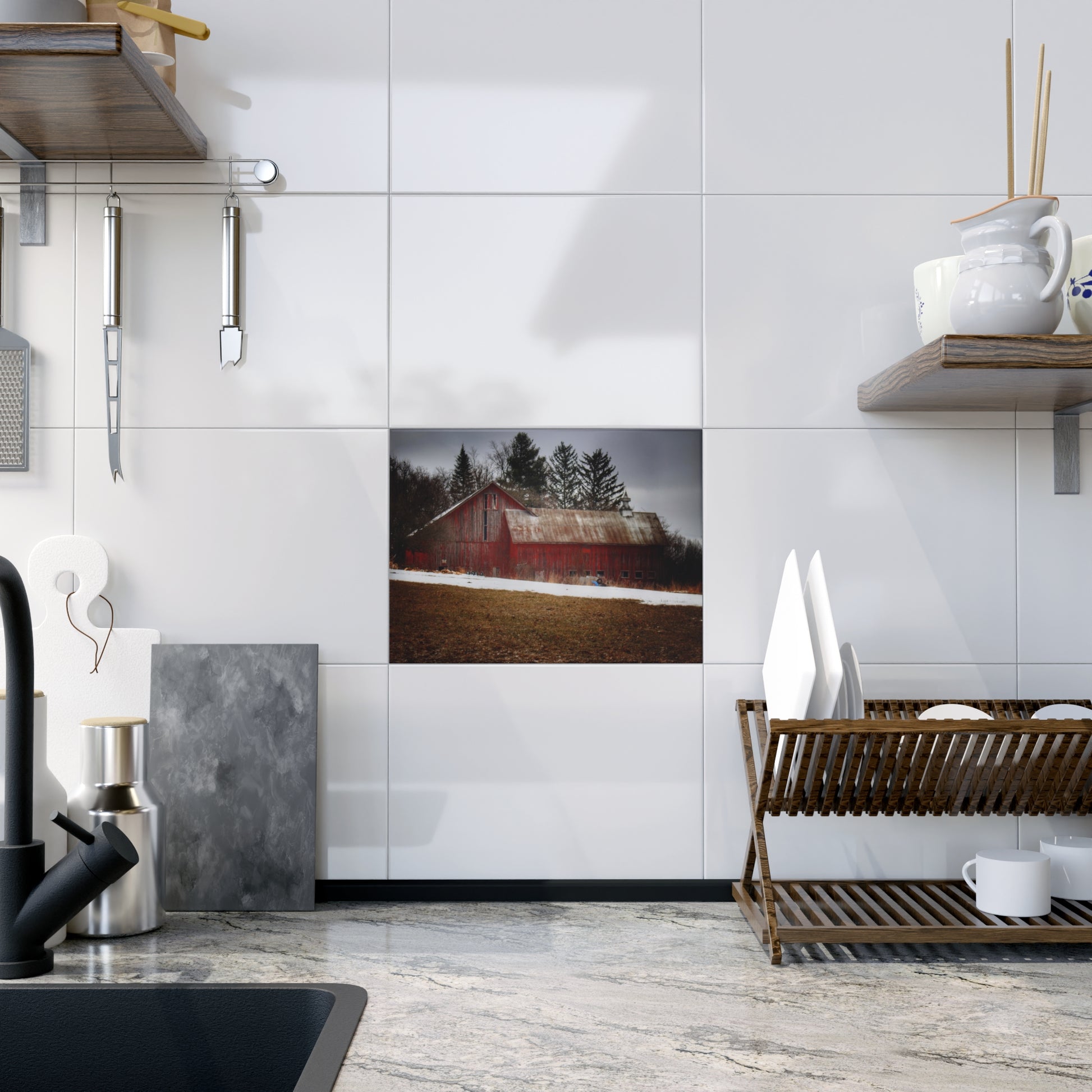 Elevate your home décor with these exquisite ceramic photo tiles featuring U R There Photography's MI Eye on the Thumb Series. Each 6" x 8" tile is a perfect blend of artistry and craftsmanship, offering full-color reproduction that brings every detail of these stunning barns to life. Choose between a glossy or matte finish to match your style and enjoy vibrant, crisp colors that capture the essence of Michigan's Thumb region.