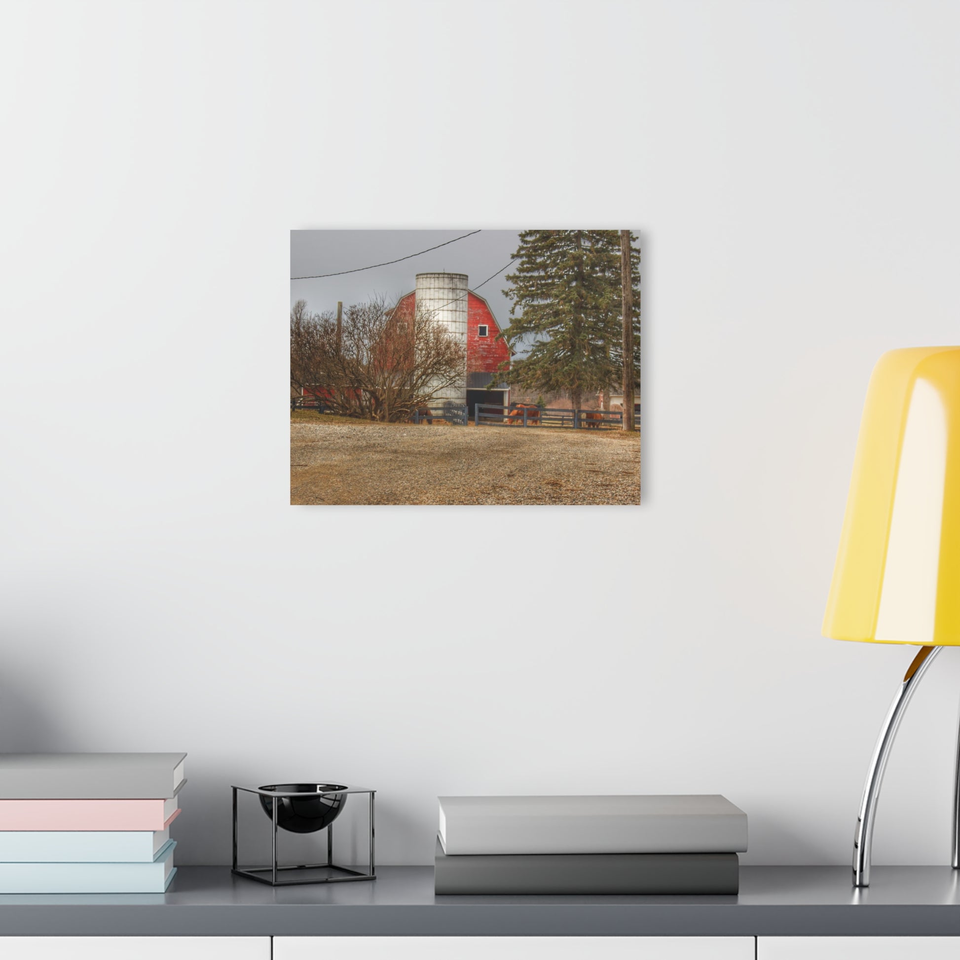 Add rustic charm to any room with the Barn Boutique Modern Farmhouse Acrylic Wall Print. The Blood Road Red and Horses print is made with high-quality acrylic for a sleek and modern look. Perfect for adding a touch of country to your home decor.