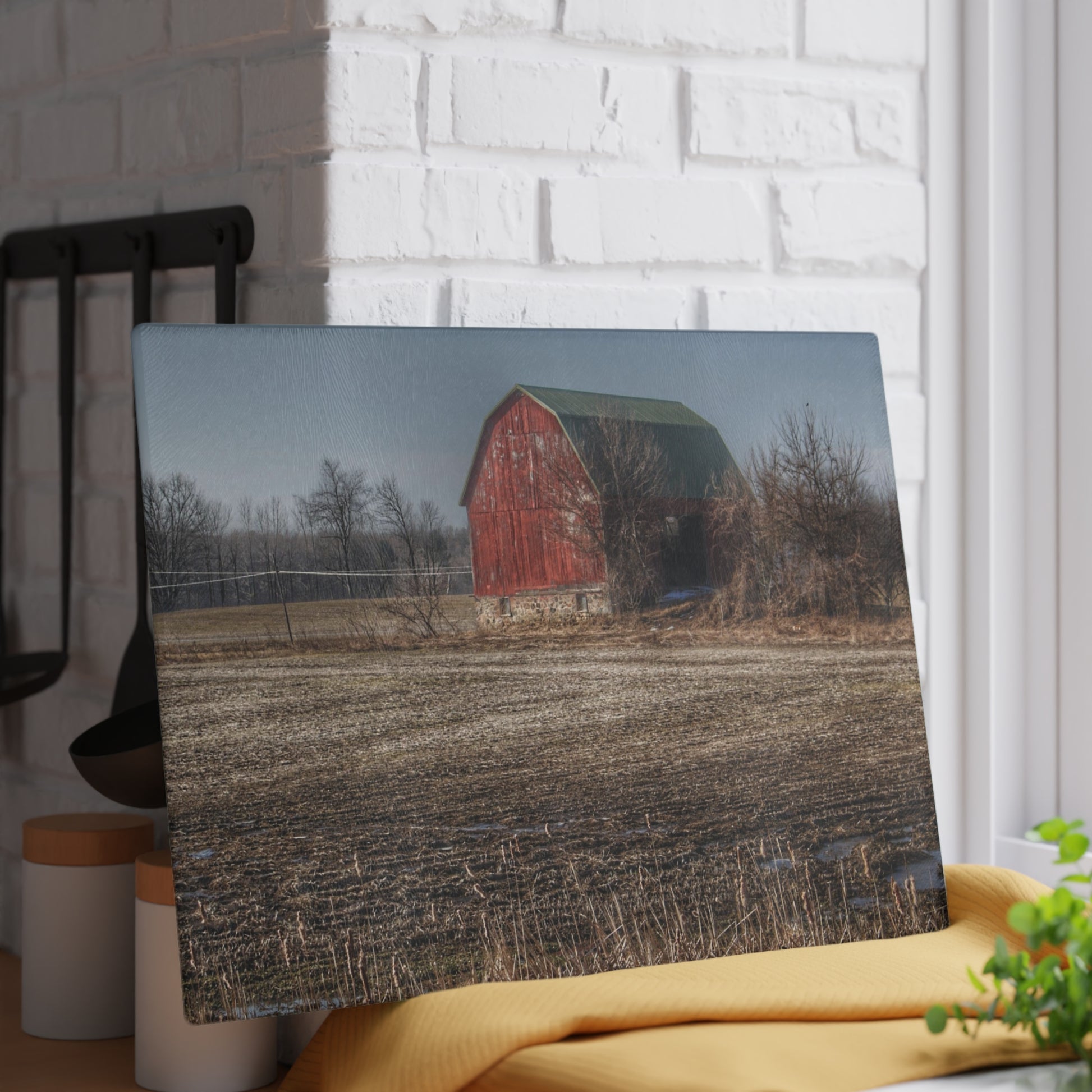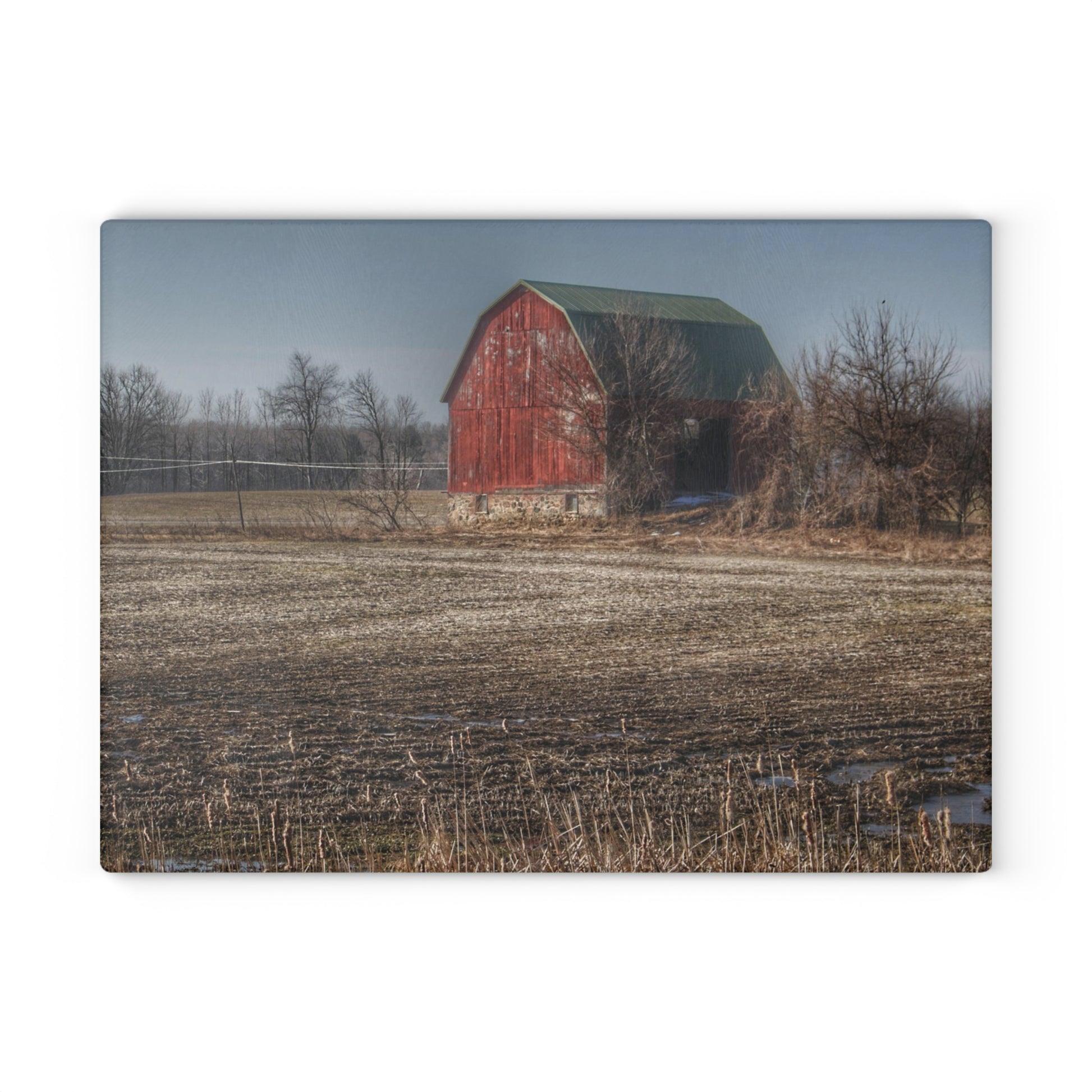 U R There Photography Bowers Road Goodland Red Rustic Farmhouse Tempered-Glass Cutting Board