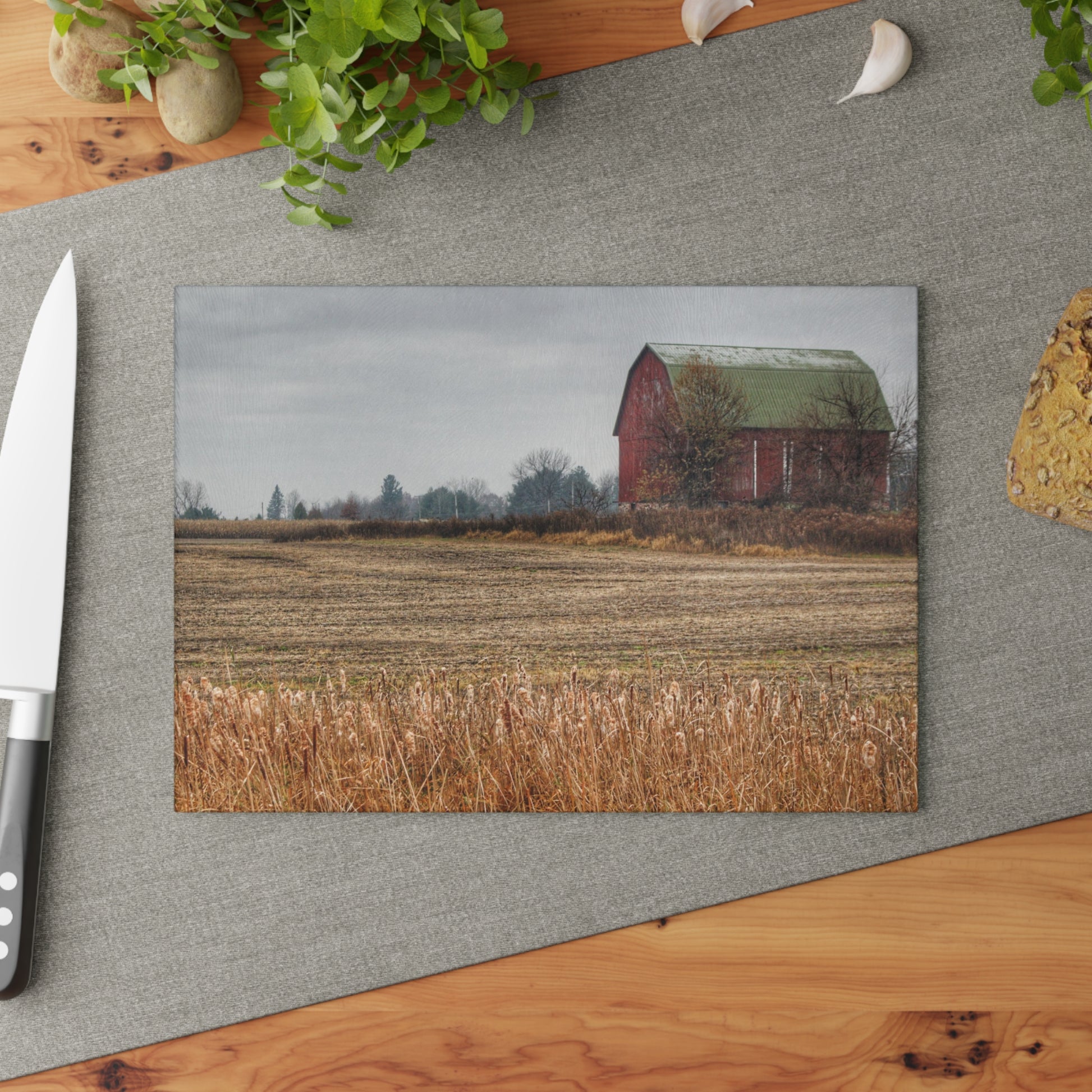 U R There Photography Bowers Road Red IV Rustic Farmhouse Tempered-Glass Cutting Board