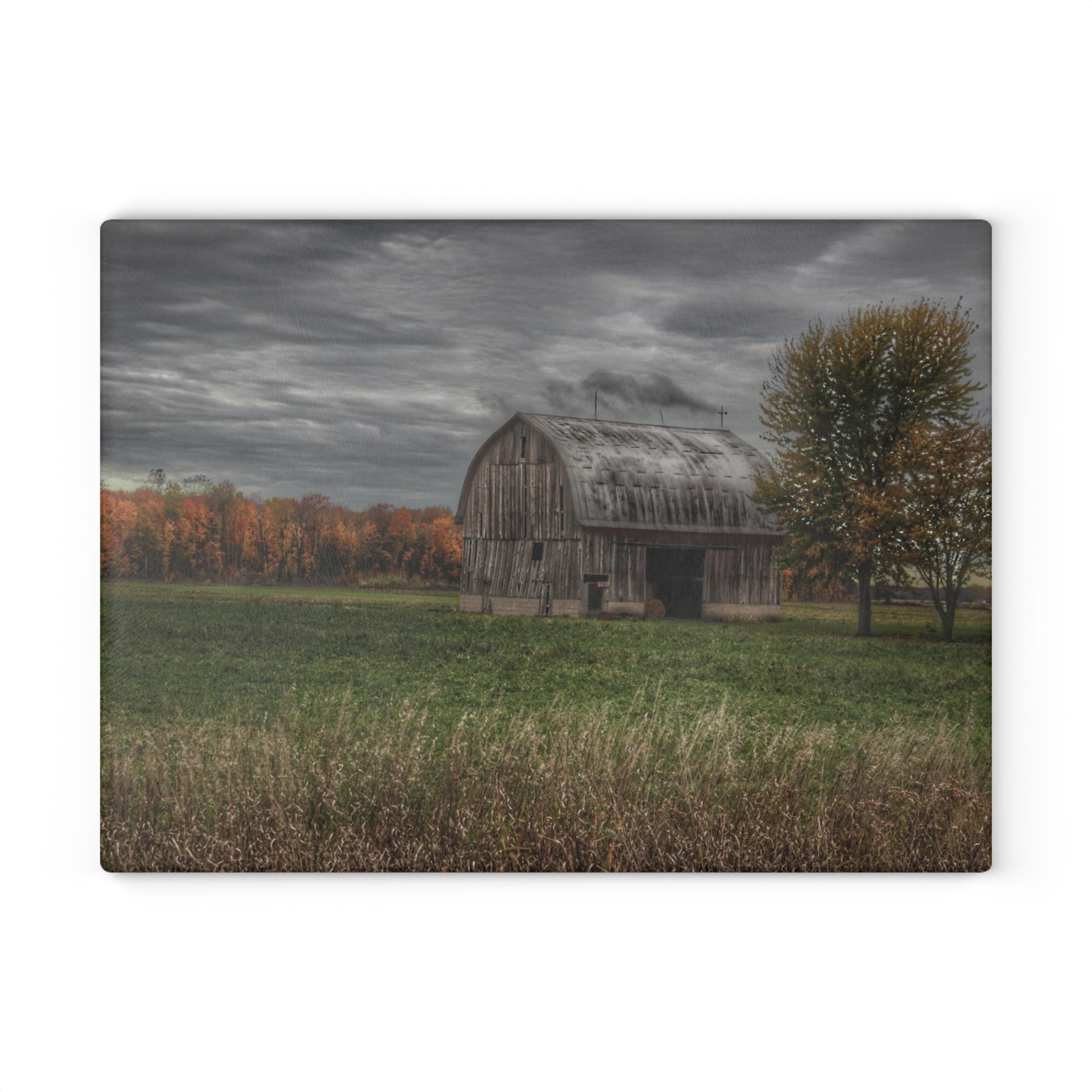 U R There Photography Bray Road Grey in the Fall Rustic Farmhouse Tempered-Glass Cutting Board
