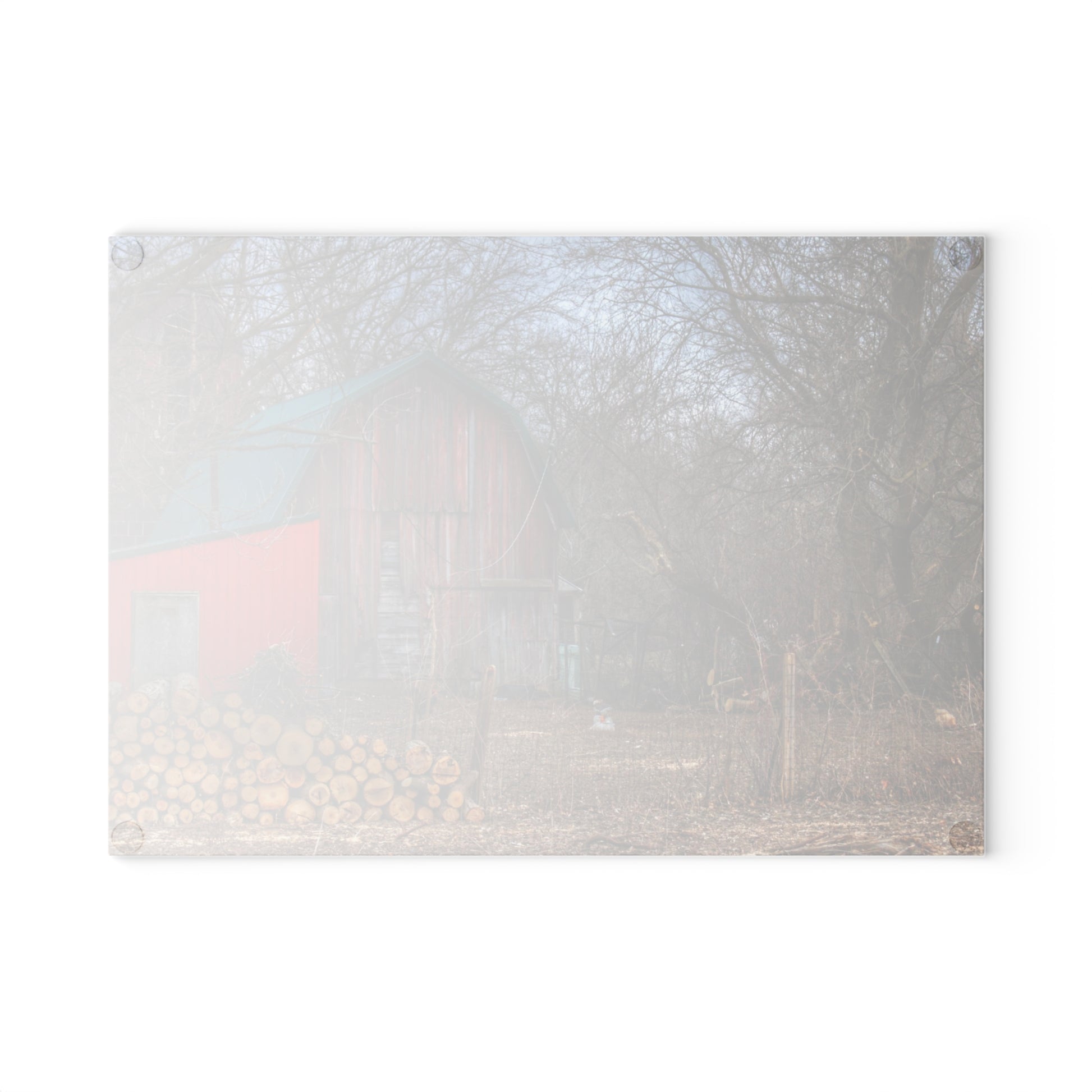 U R There Photography Bray Road Hidden Barnyard Red II Rustic Farmhouse Tempered-Glass Cutting Board