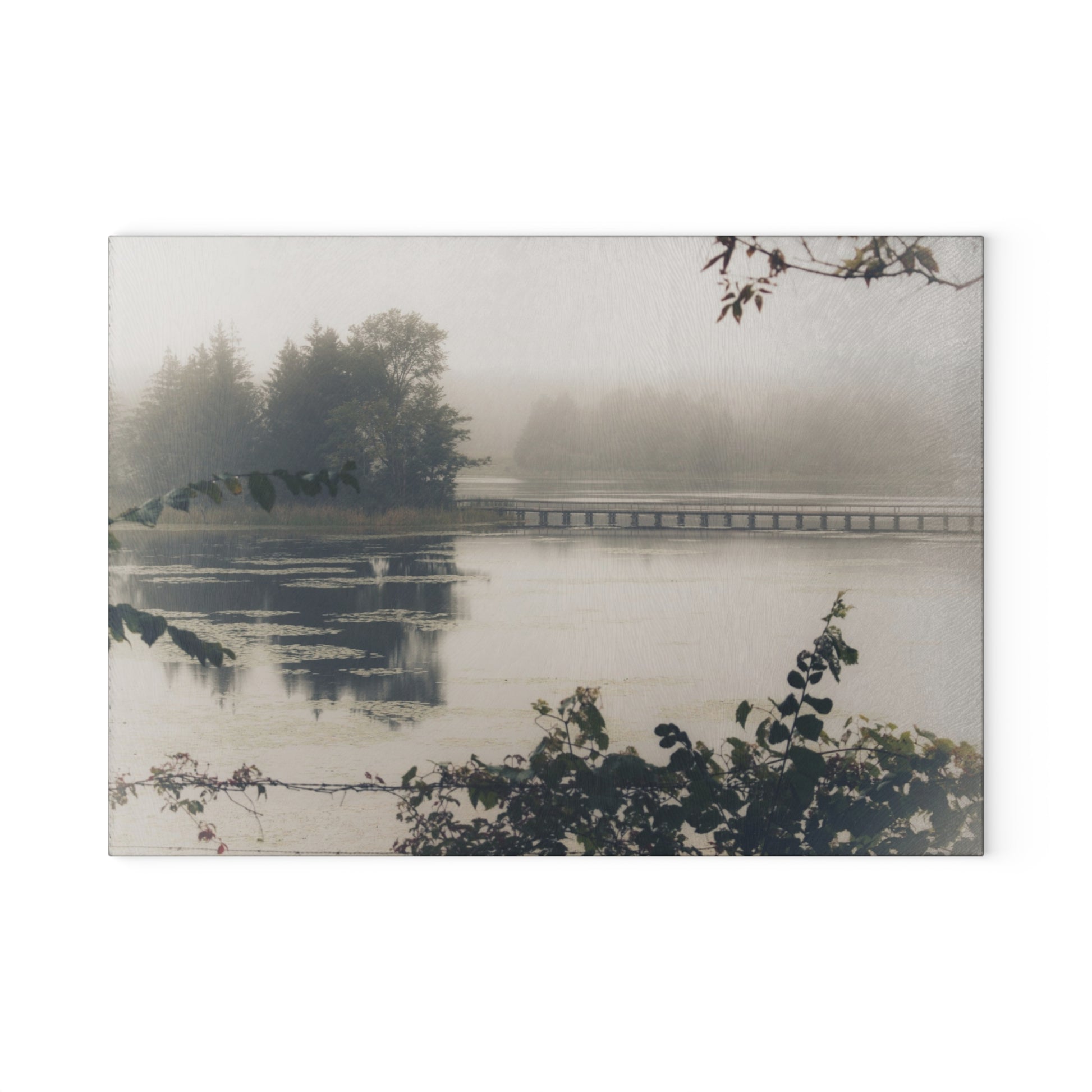 U R There Photography Bridge in Fog Rustic Farmhouse Tempered-Glass Cutting Board