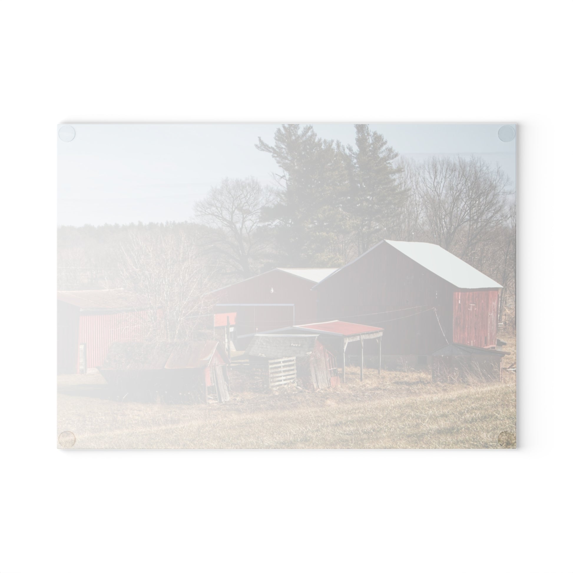 U R There Photography Bronson Lake Reds Rustic Farmhouse Tempered-Glass Cutting Board 8"x 11"
