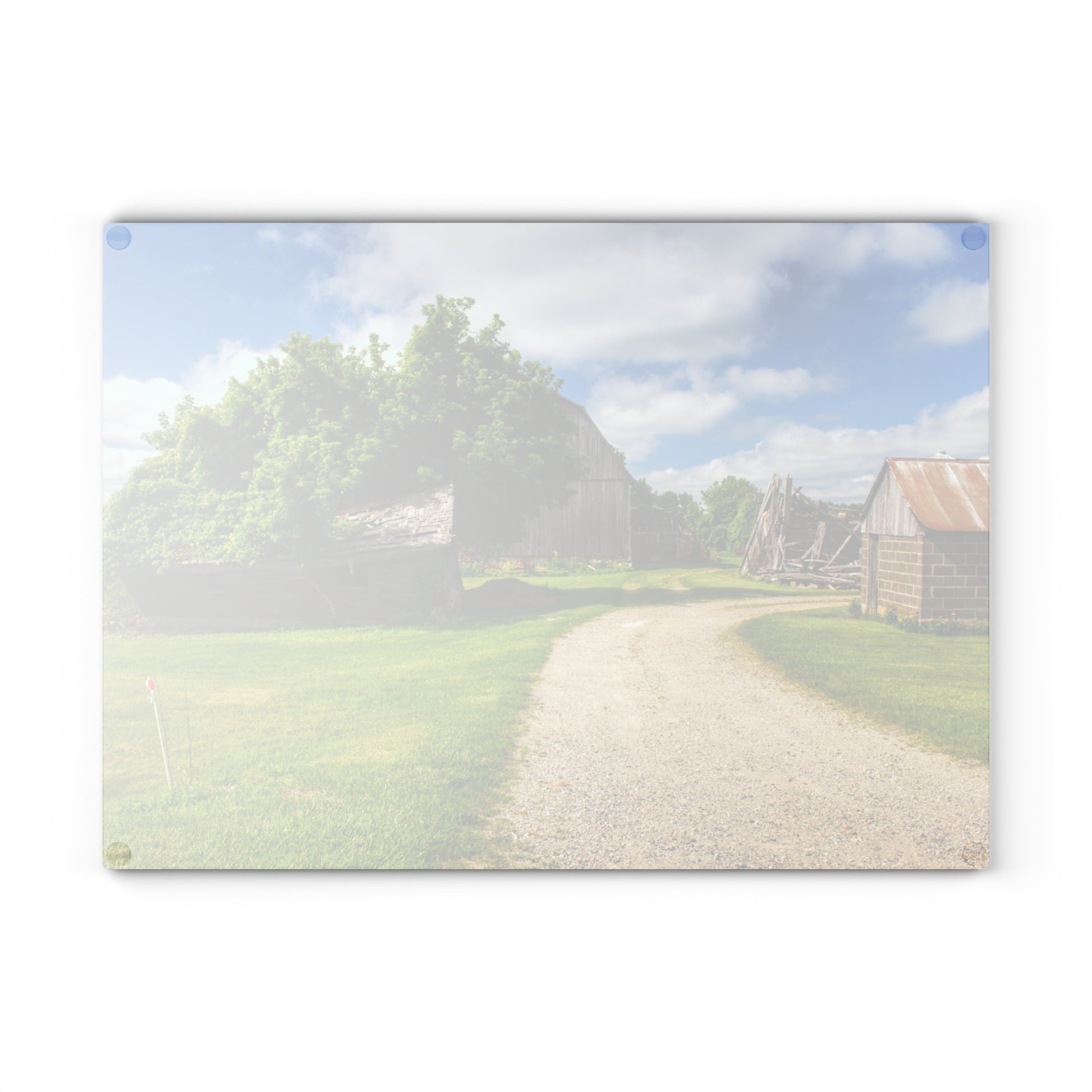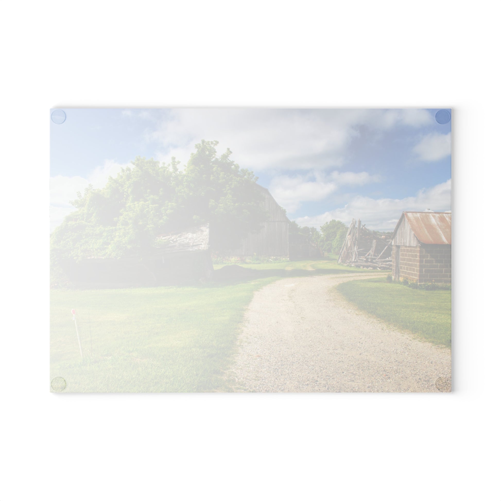 U R There Photography Brown City Road Barn and Buddy II Rustic Farmhouse Tempered-Glass Cutting Board