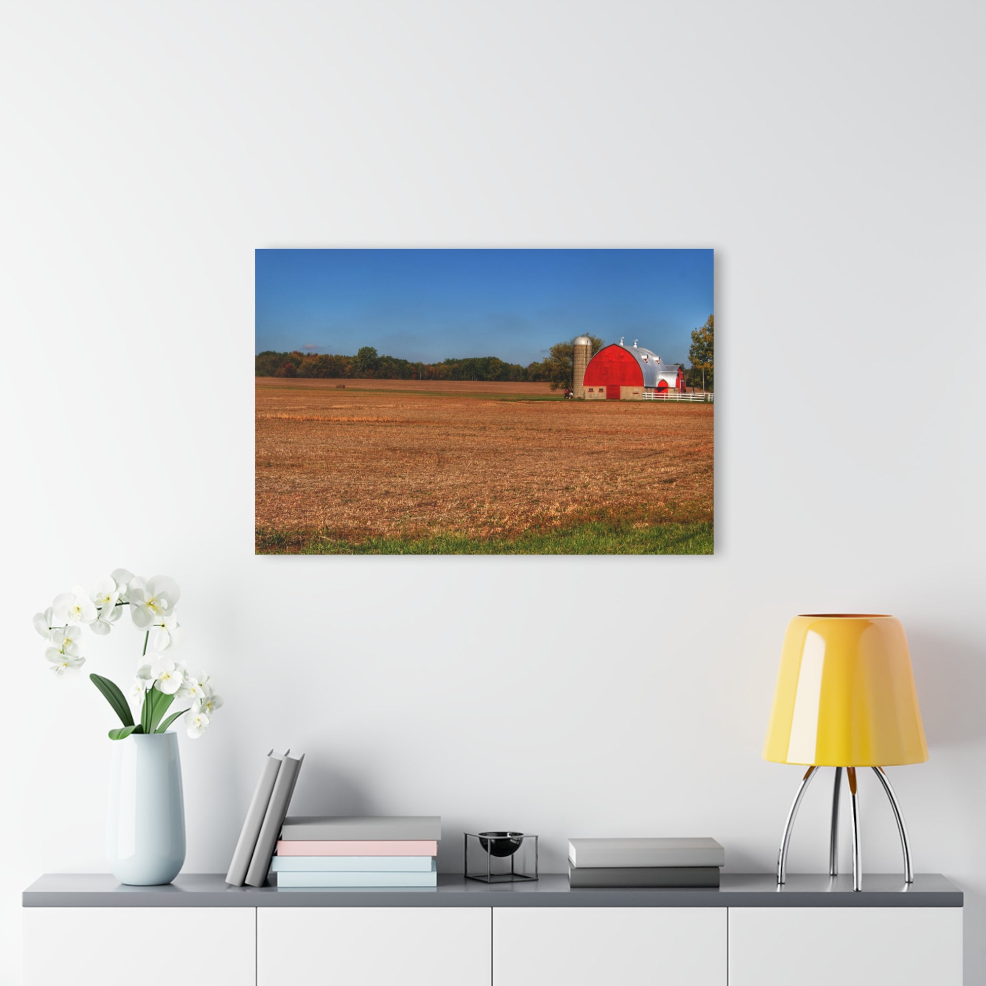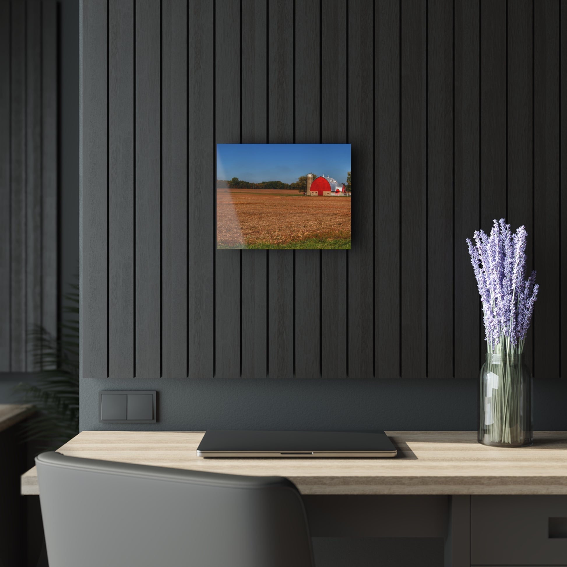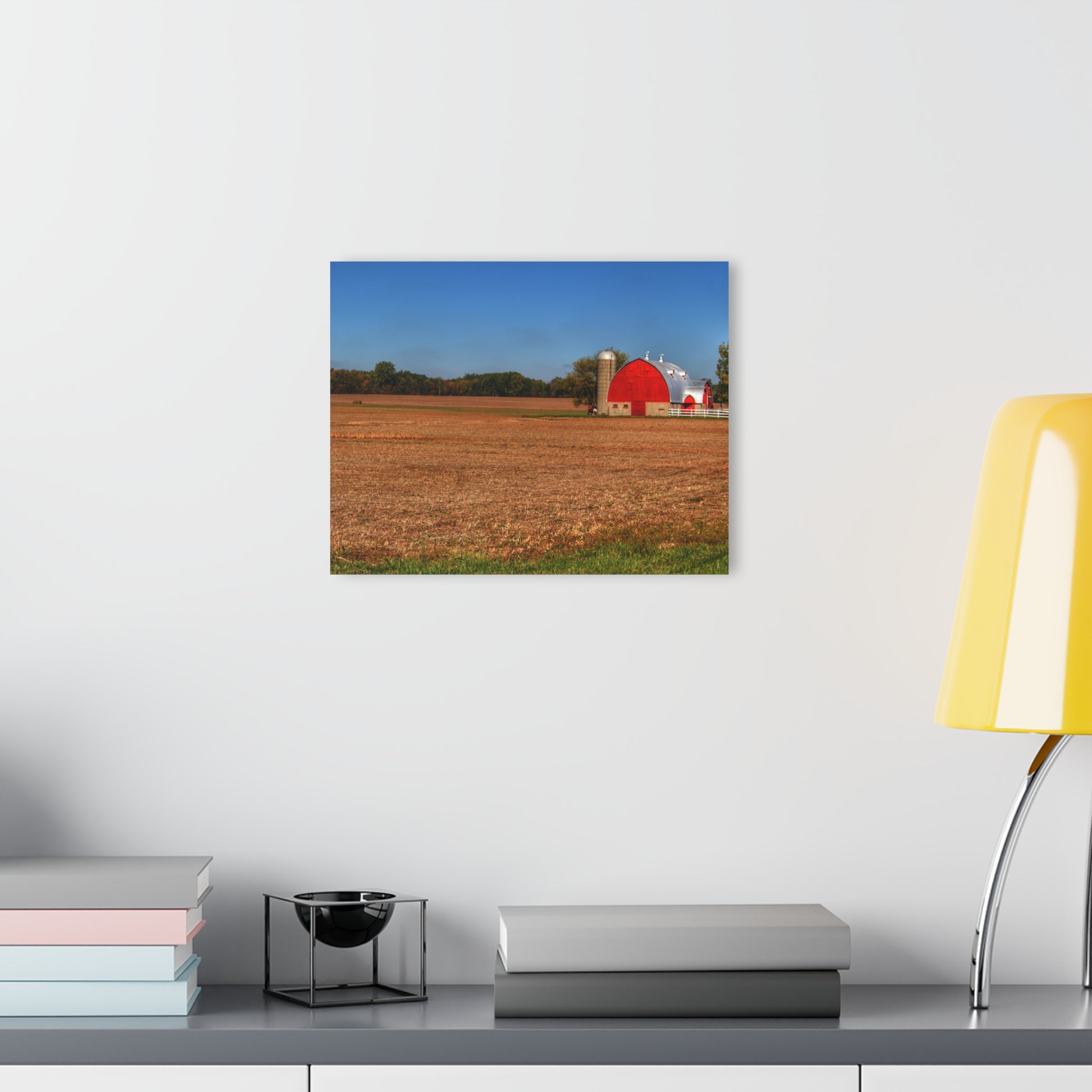 Add rustic charm to any room with the Barn Boutique Modern Farmhouse Acrylic Wall Print. The Brown City Wellman Line Road Red print is made with high-quality acrylic for a sleek and modern look. Perfect for adding a touch of country to your home decor.