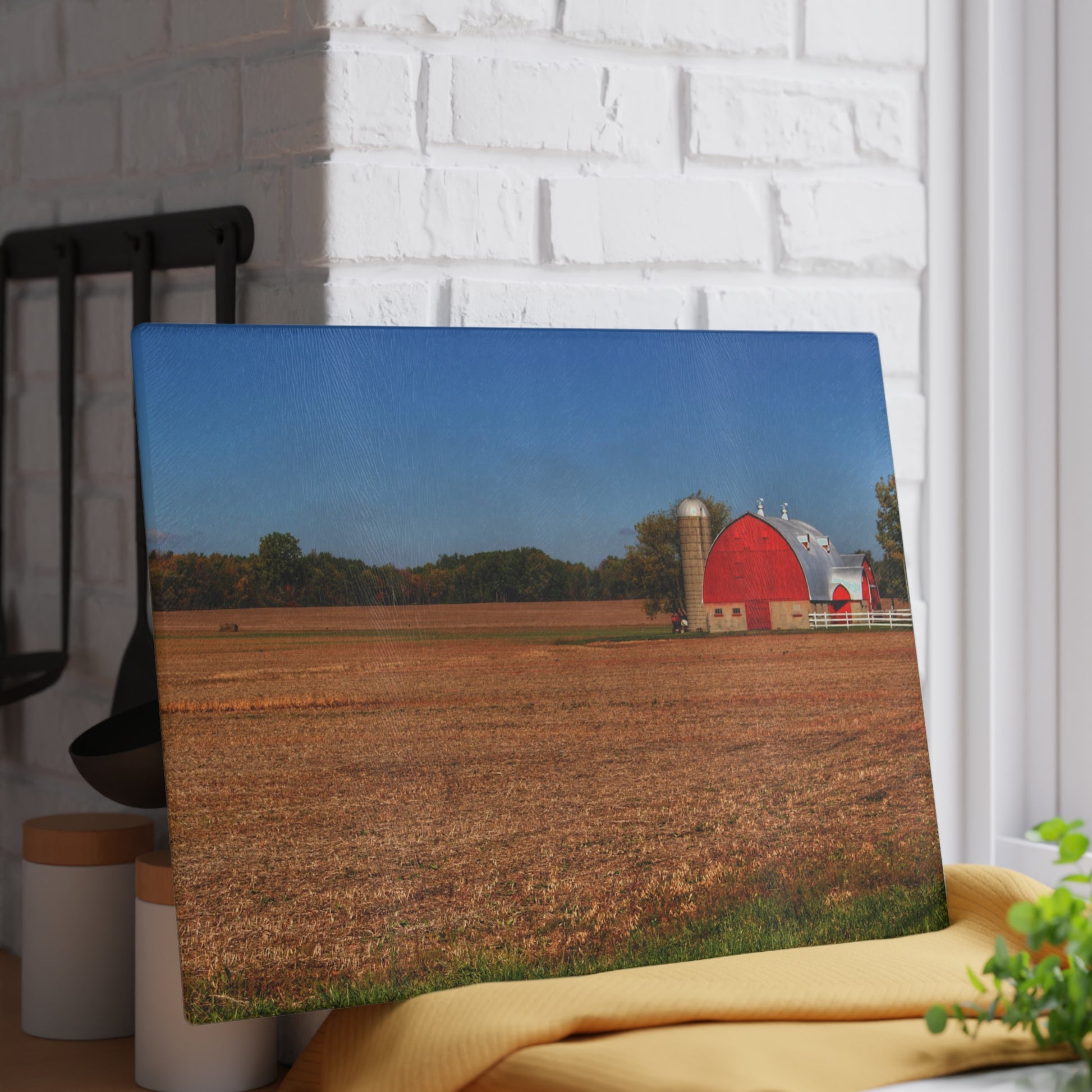 U R There Photography Brown City Wellman Line Road Red Rustic Farmhouse Tempered-Glass Cutting Board