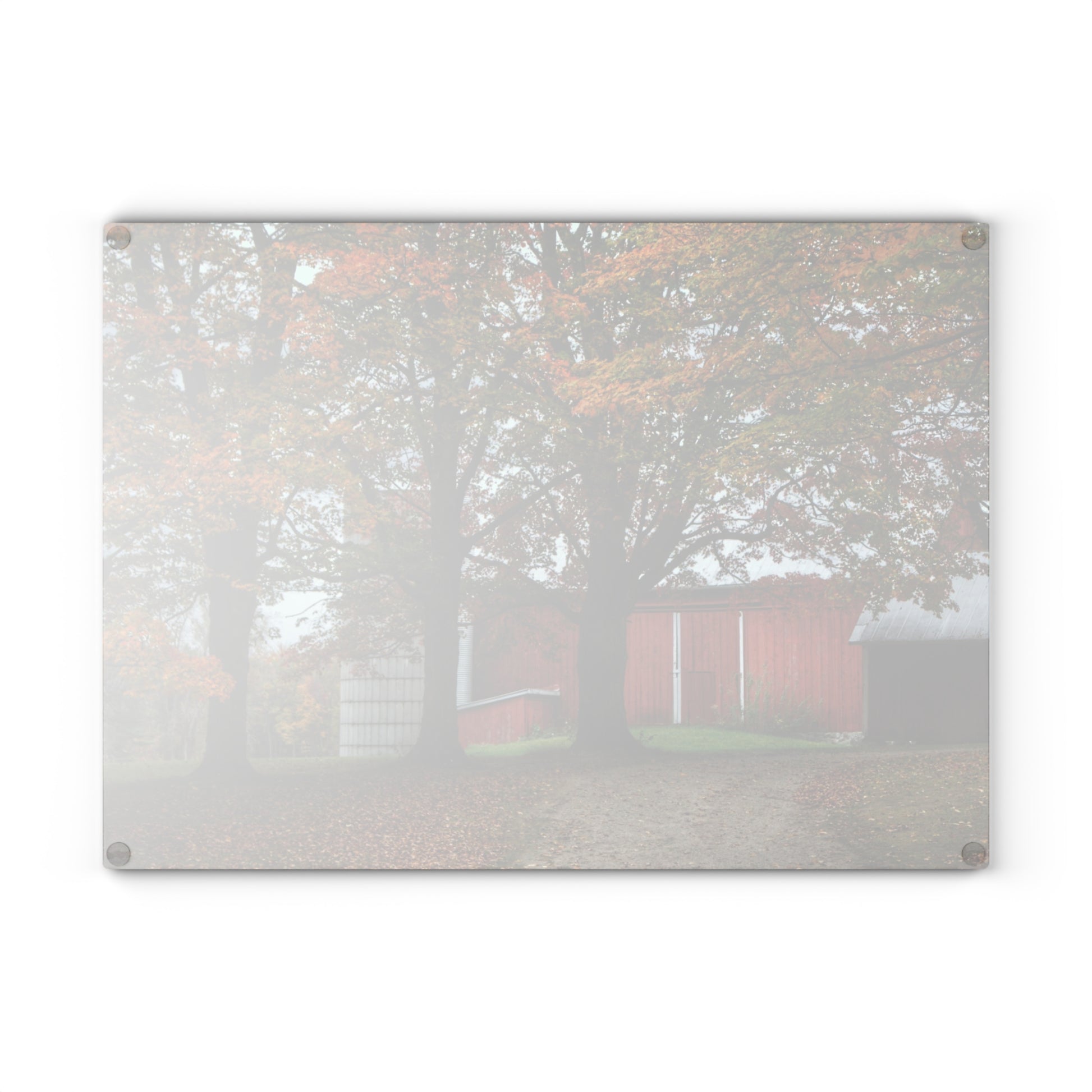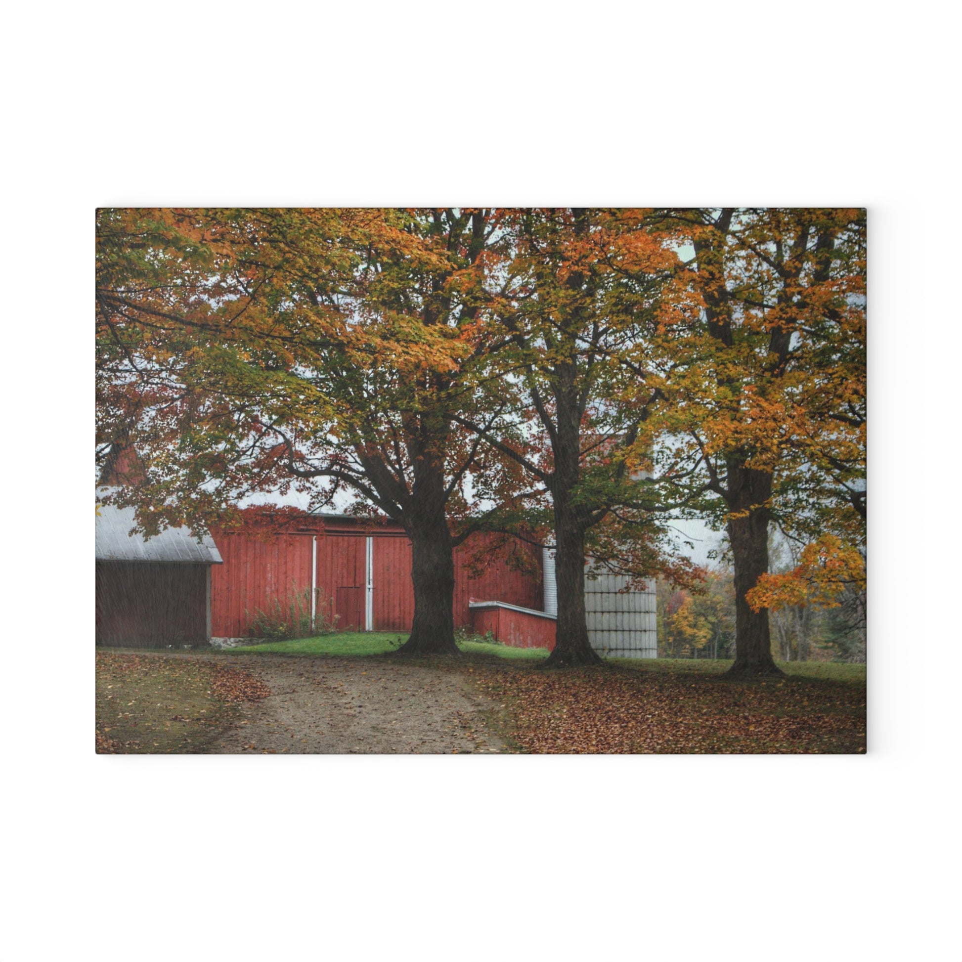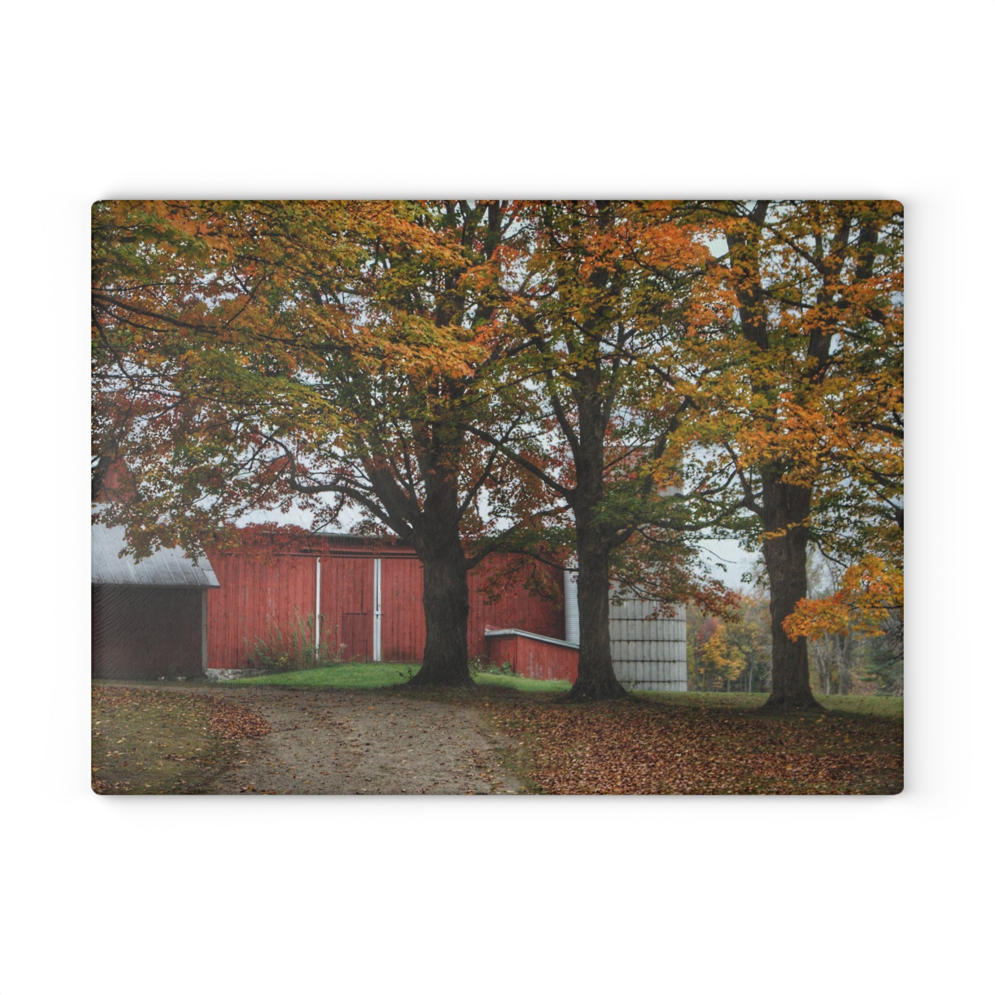 U R There Photography Brown Road Red in the Fall Rustic Farmhouse Tempered-Glass Cutting Board