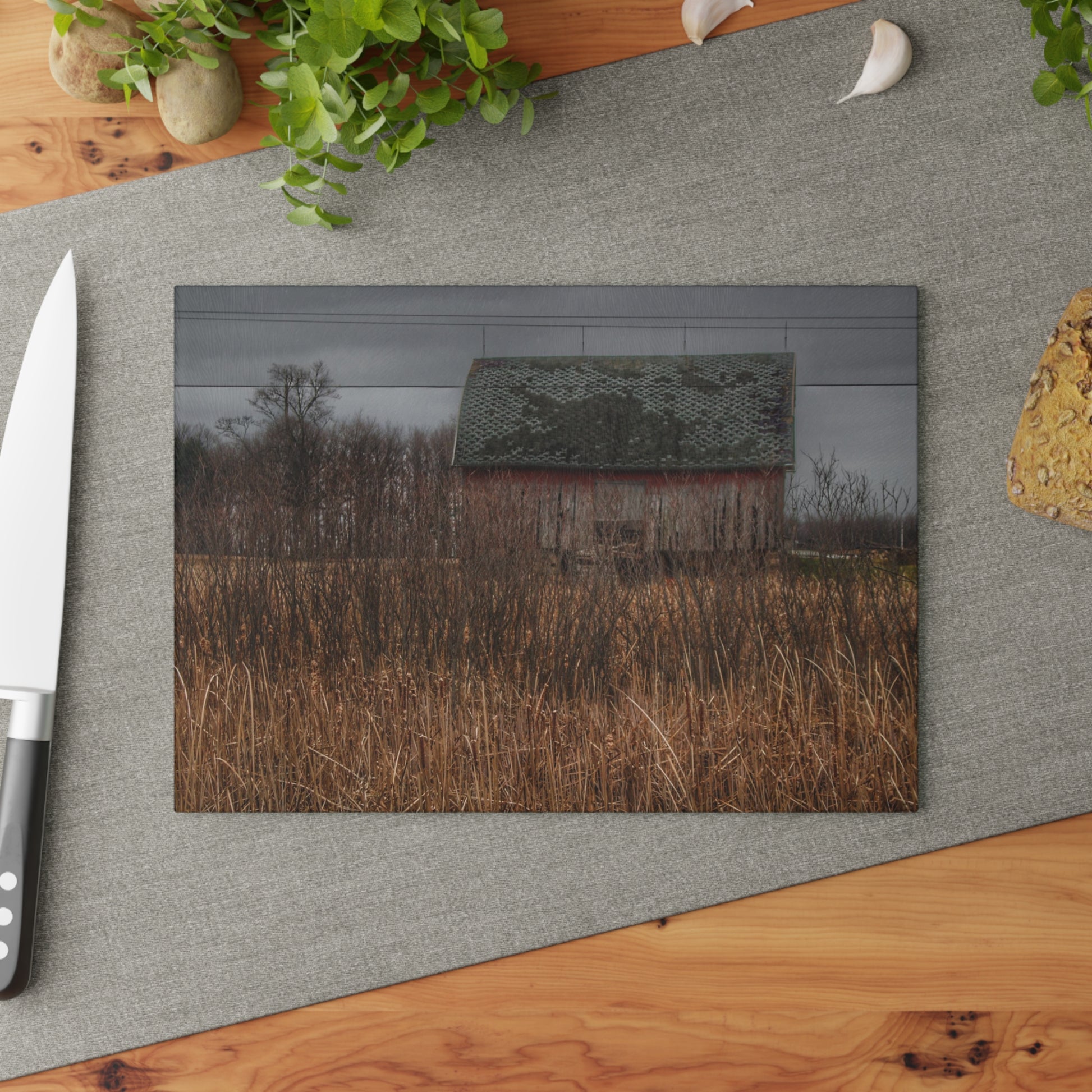 U R There Photography Brown Road Rustic Rustic Farmhouse Tempered-Glass Cutting Board