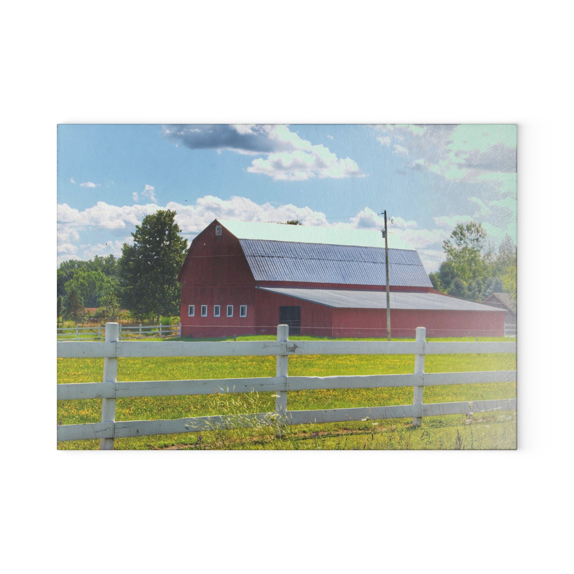 U R There Photography Burt Road Red Rustic Farmhouse Tempered-Glass Cutting Board