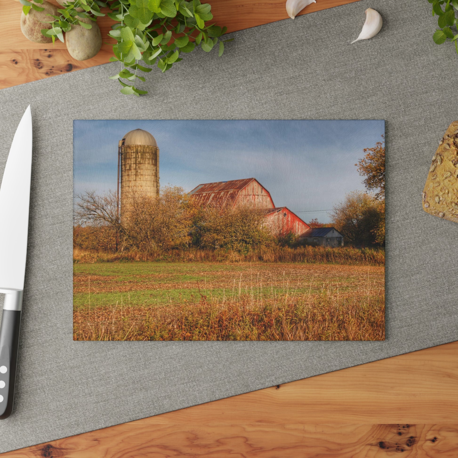 U R There Photography Cade Road Red and Silo Rustic Farmhouse Tempered-Glass Cutting Board