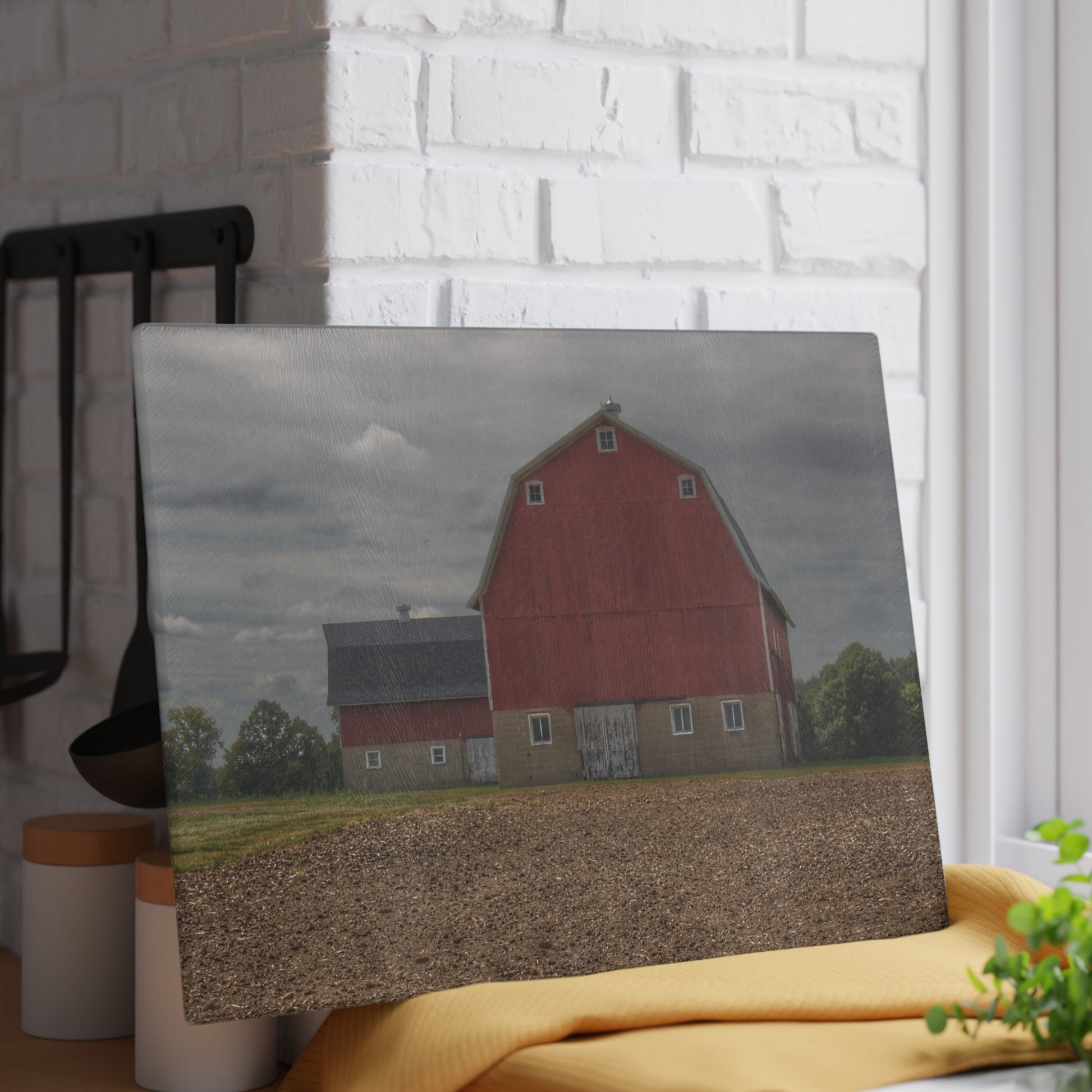 U R There Photography Cade Road Red I Rustic Farmhouse Tempered-Glass Cutting Board