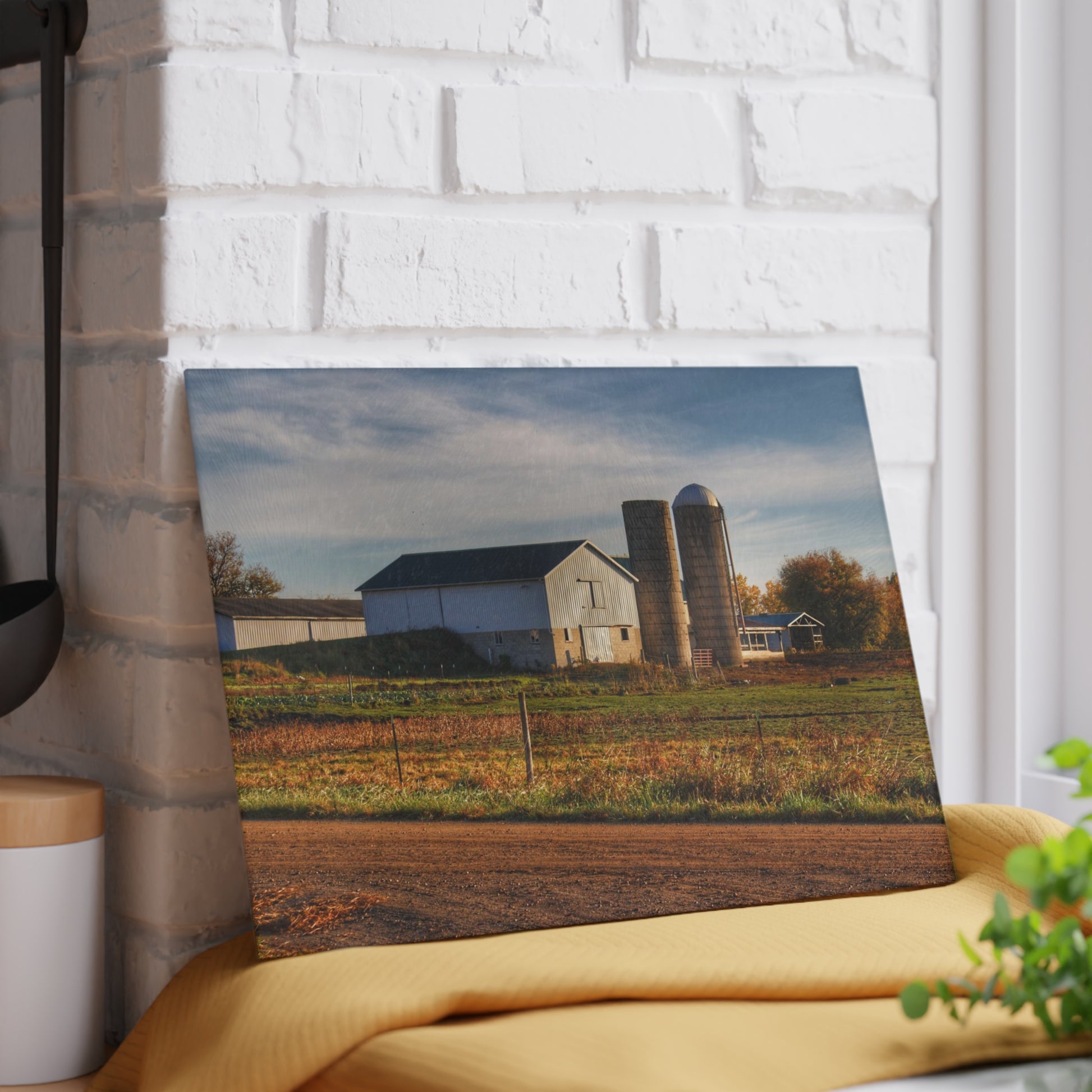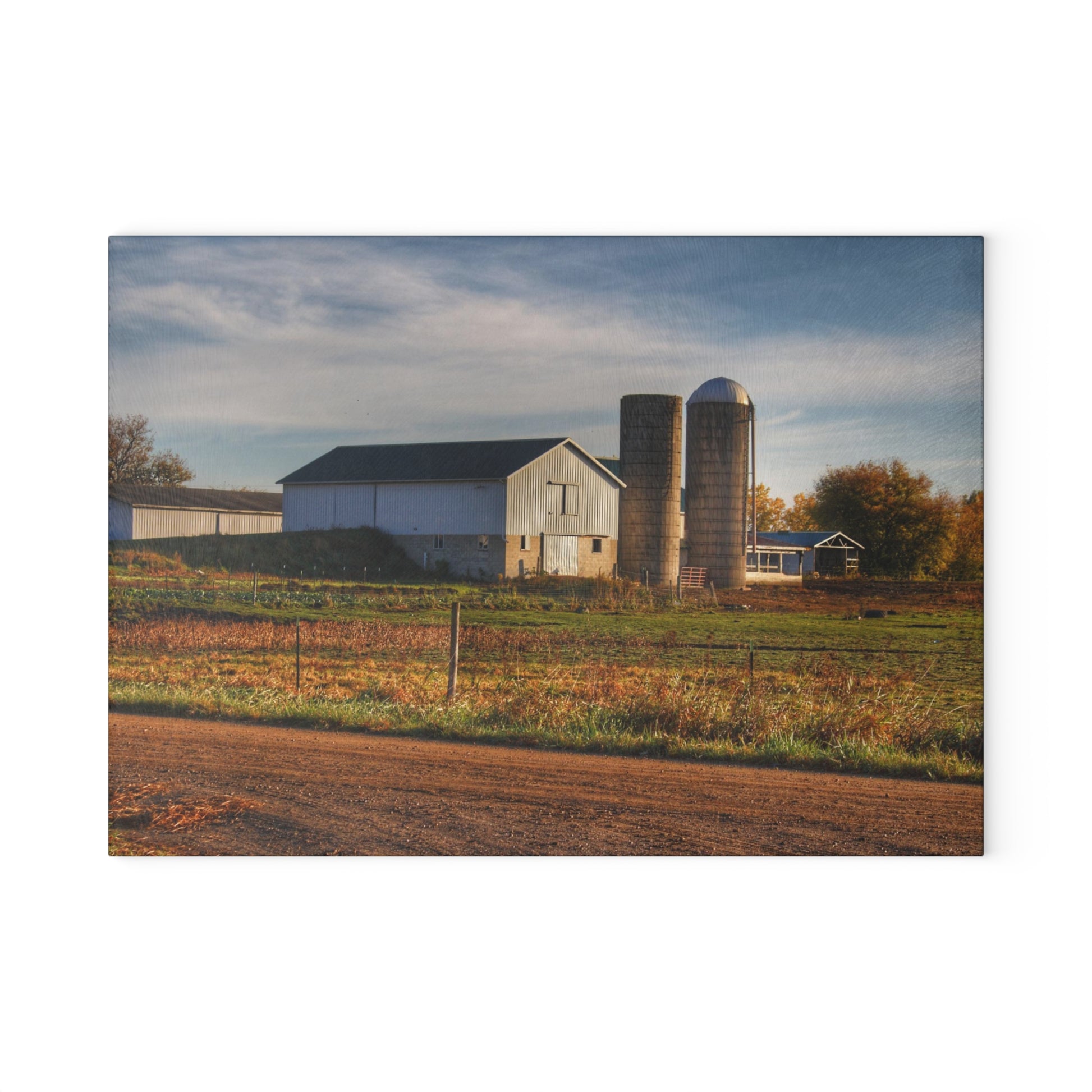 U R There Photography Cade Road White Rustic Farmhouse Tempered-Glass Cutting Board