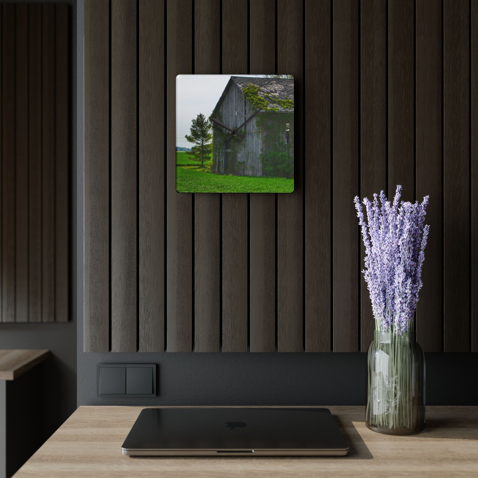 U R There Photography Caro Road Twin Grey I Rustic Farmhouse Acrylic Analog Wall Clock