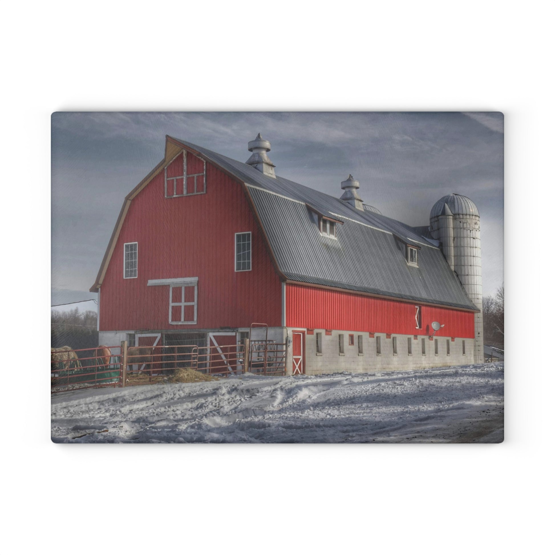 U R There Photography Casey Road Red Rustic Farmhouse Tempered-Glass Cutting Board