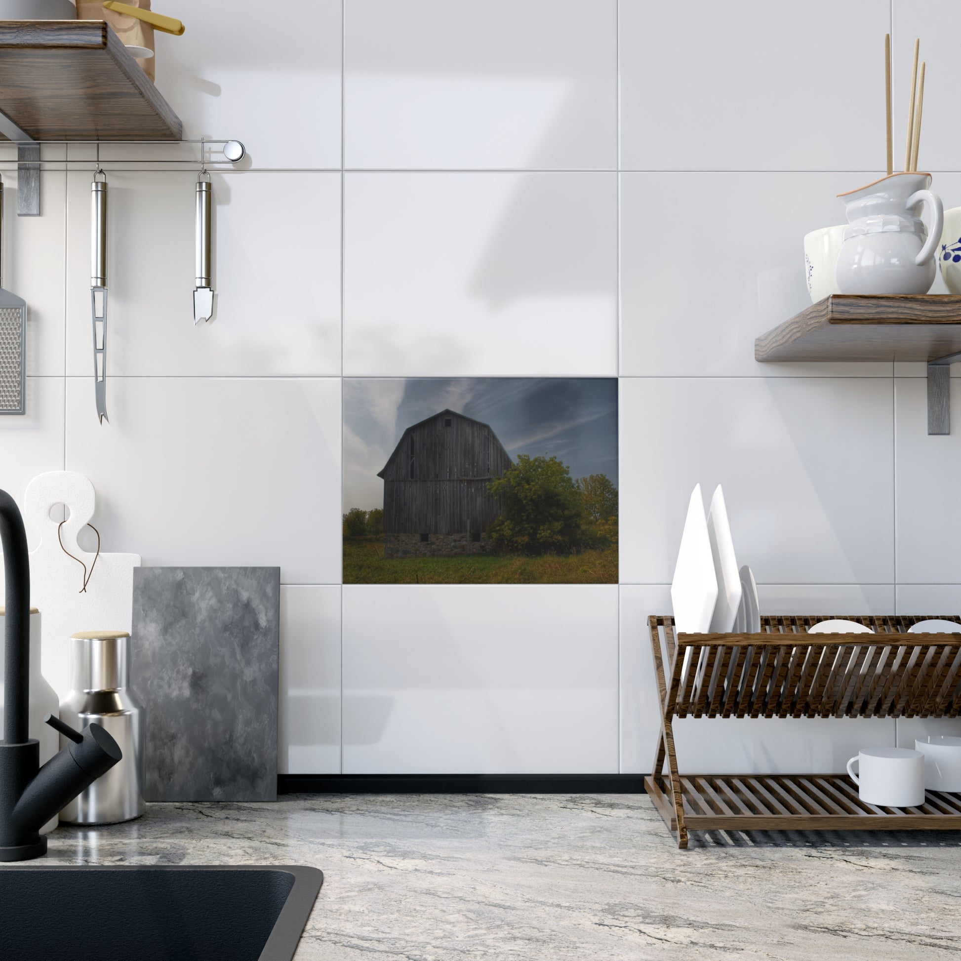 Elevate your home décor with these exquisite ceramic photo tiles featuring U R There Photography's MI Eye on the Thumb Series. Each 6" x 8" tile is a perfect blend of artistry and craftsmanship, offering full-color reproduction that brings every detail of these stunning barns to life. Choose between a glossy or matte finish to match your style and enjoy vibrant, crisp colors that capture the essence of Michigan's Thumb region.