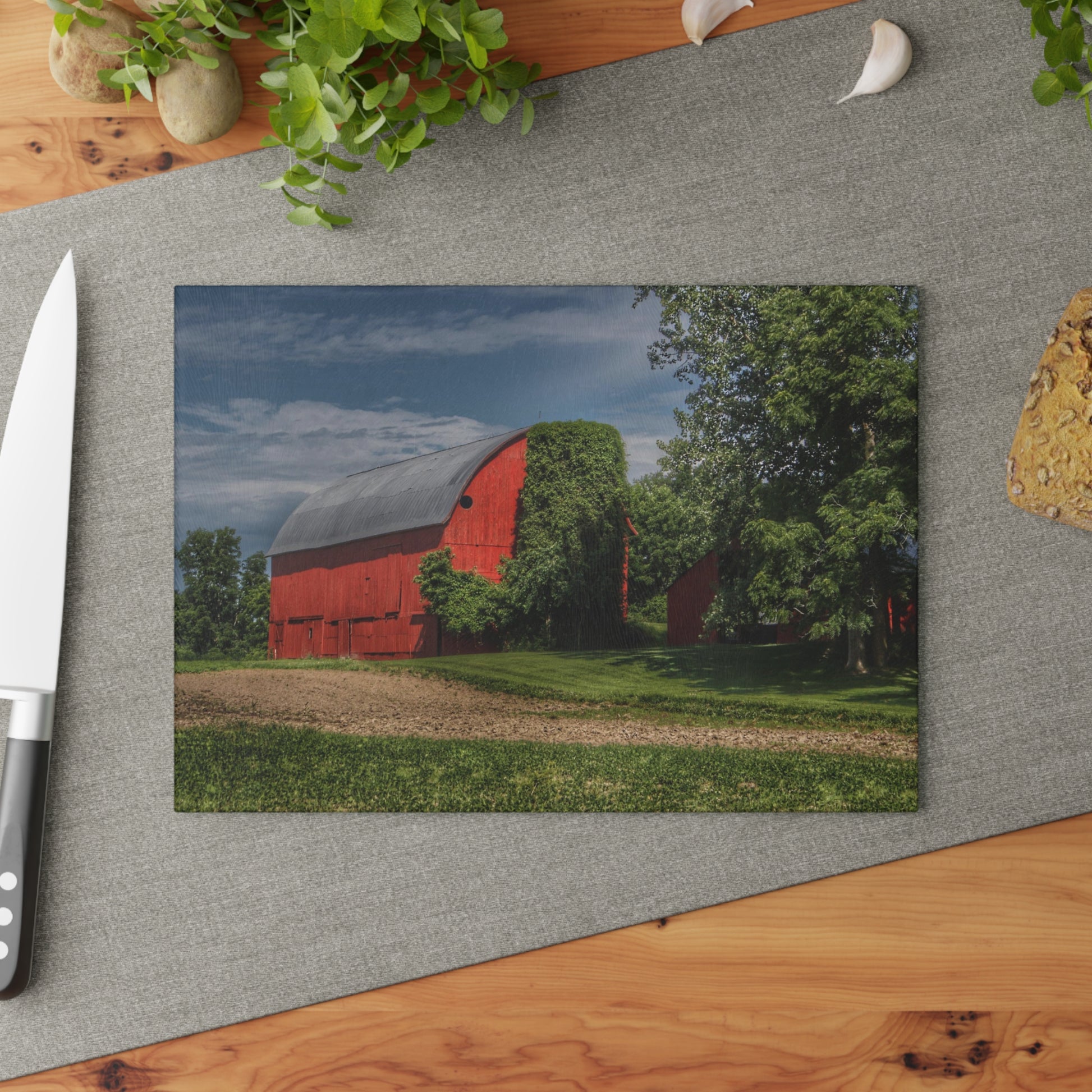 U R There Photography Catlin Road Red I Rustic Farmhouse Tempered-Glass Cutting Board