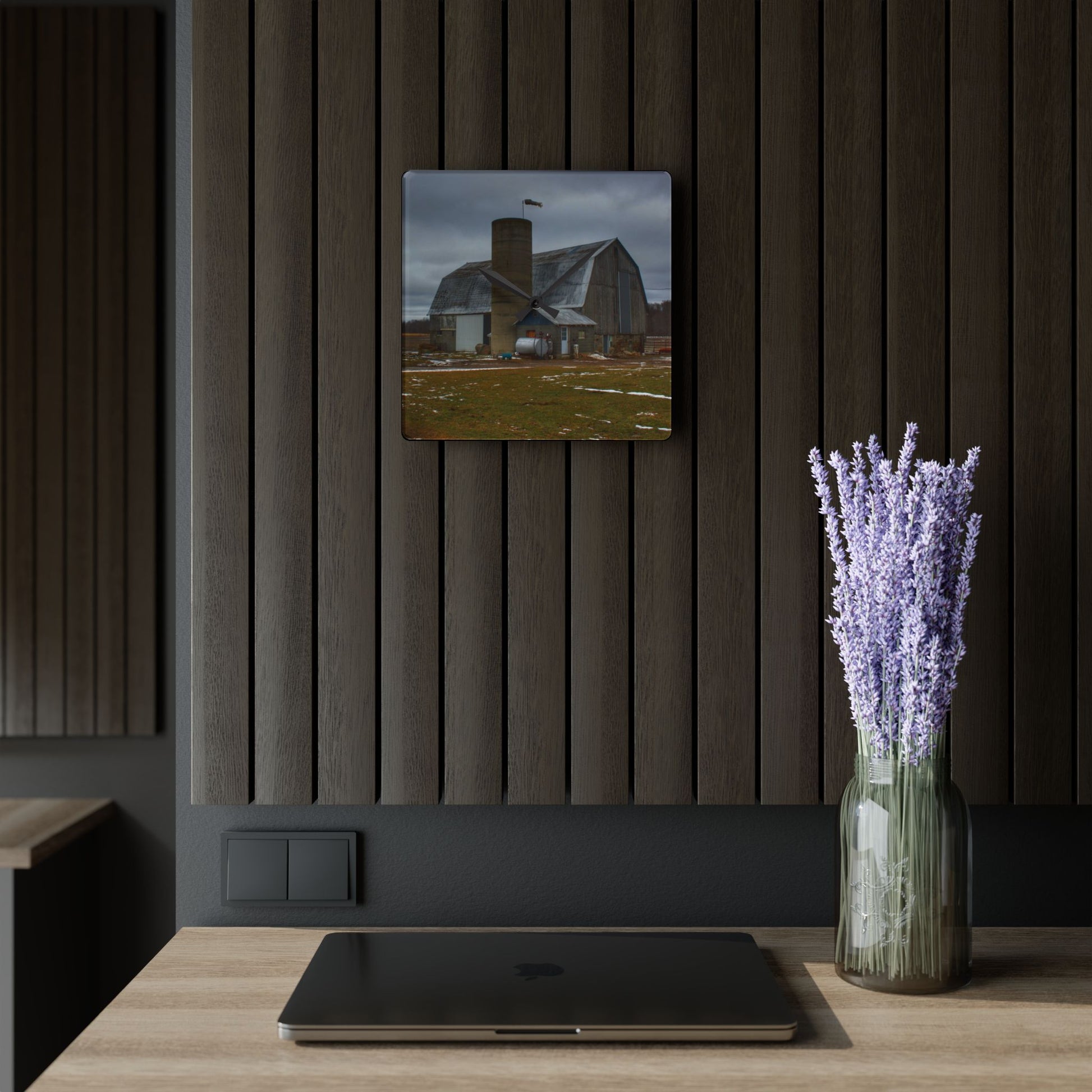 U R There Photography Chapman Road Grey I Rustic Farmhouse Acrylic Analog Wall Clock
