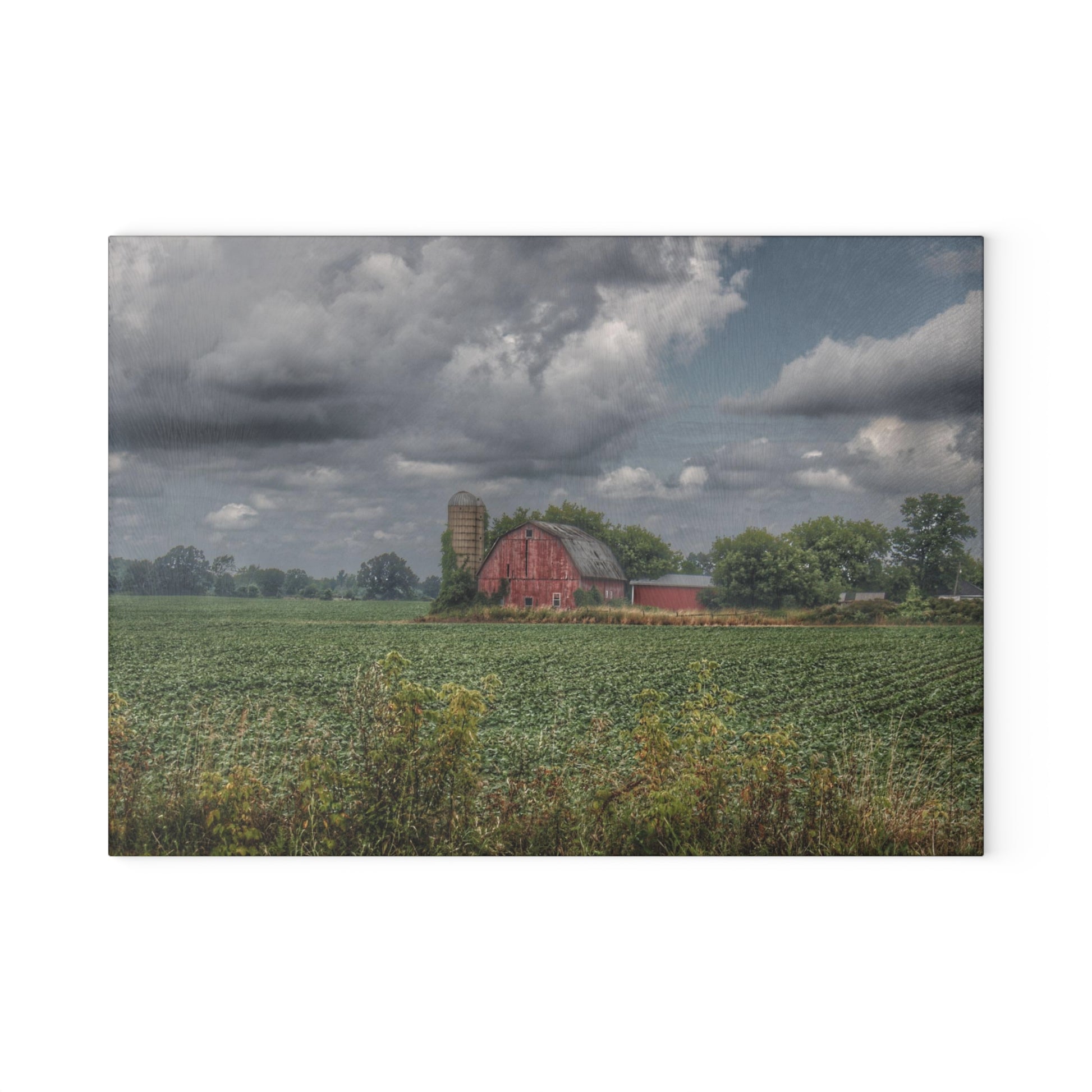 U R There Photography Church Road Red Rustic Farmhouse Tempered-Glass Cutting Board