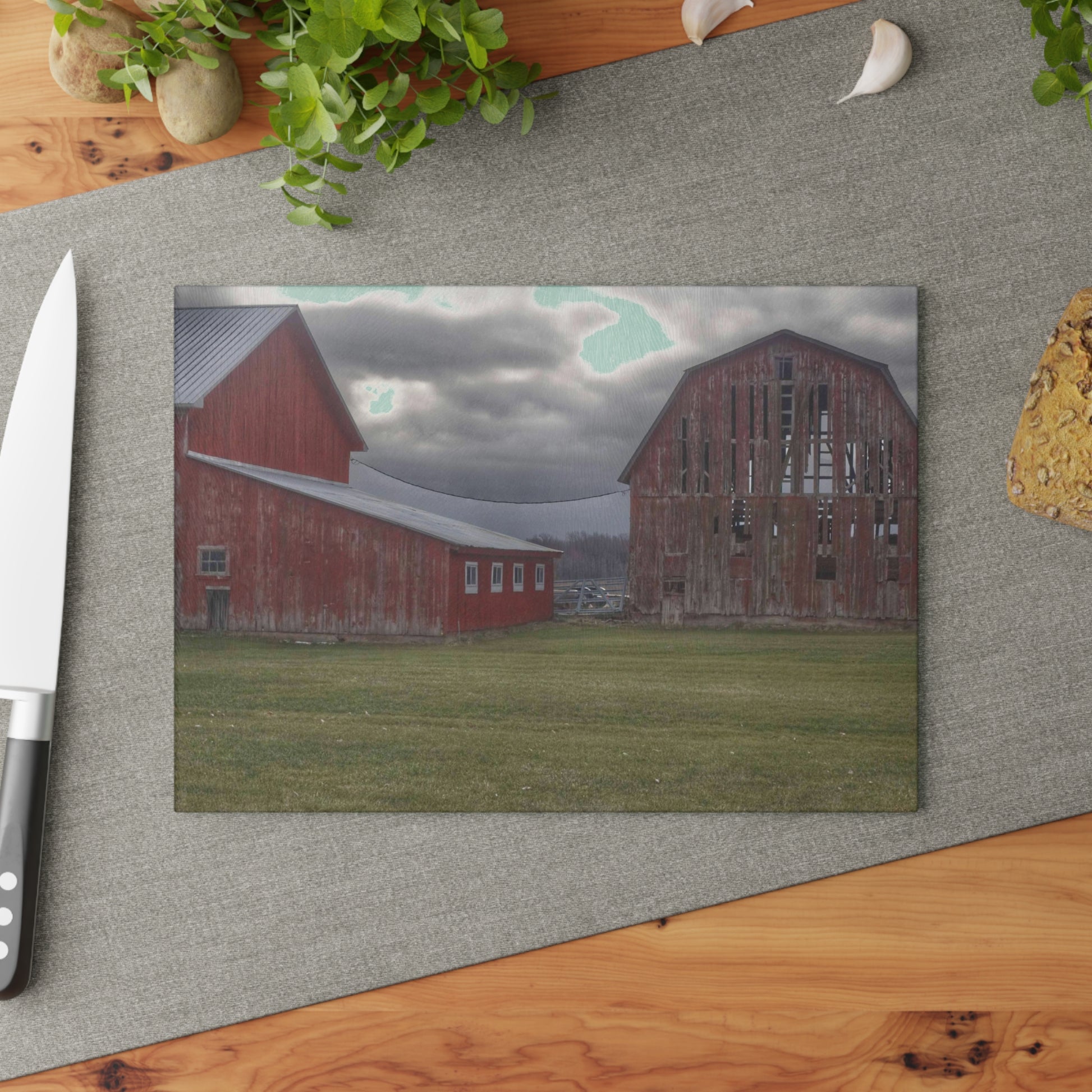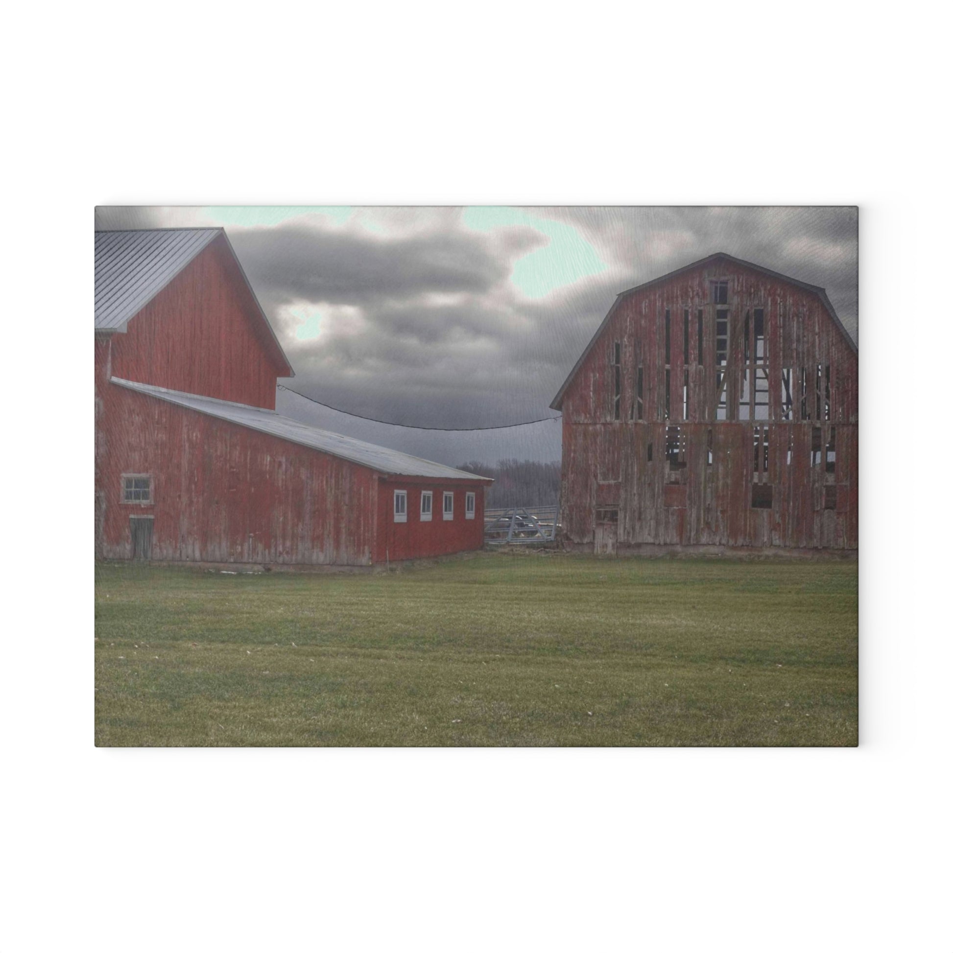 U R There Photography Church Road Reds Rustic Farmhouse Tempered-Glass Cutting Board