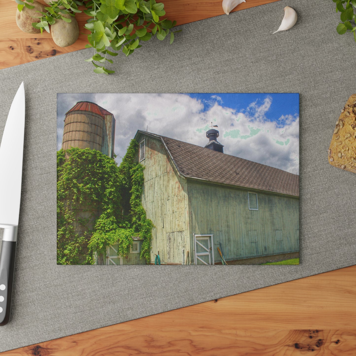 U R There Photography Clark Road Meadow Green Rustic Farmhouse Tempered-Glass Cutting Board