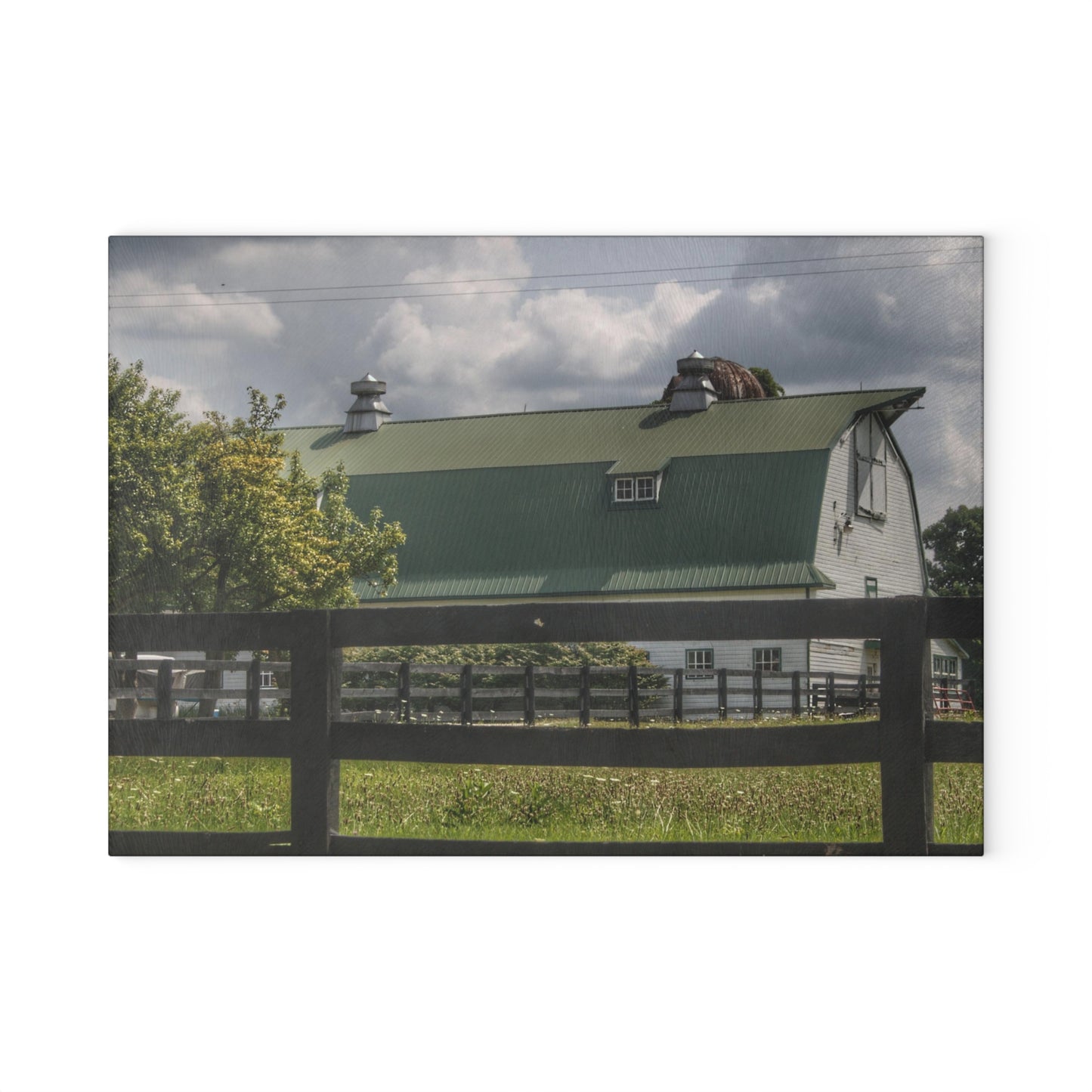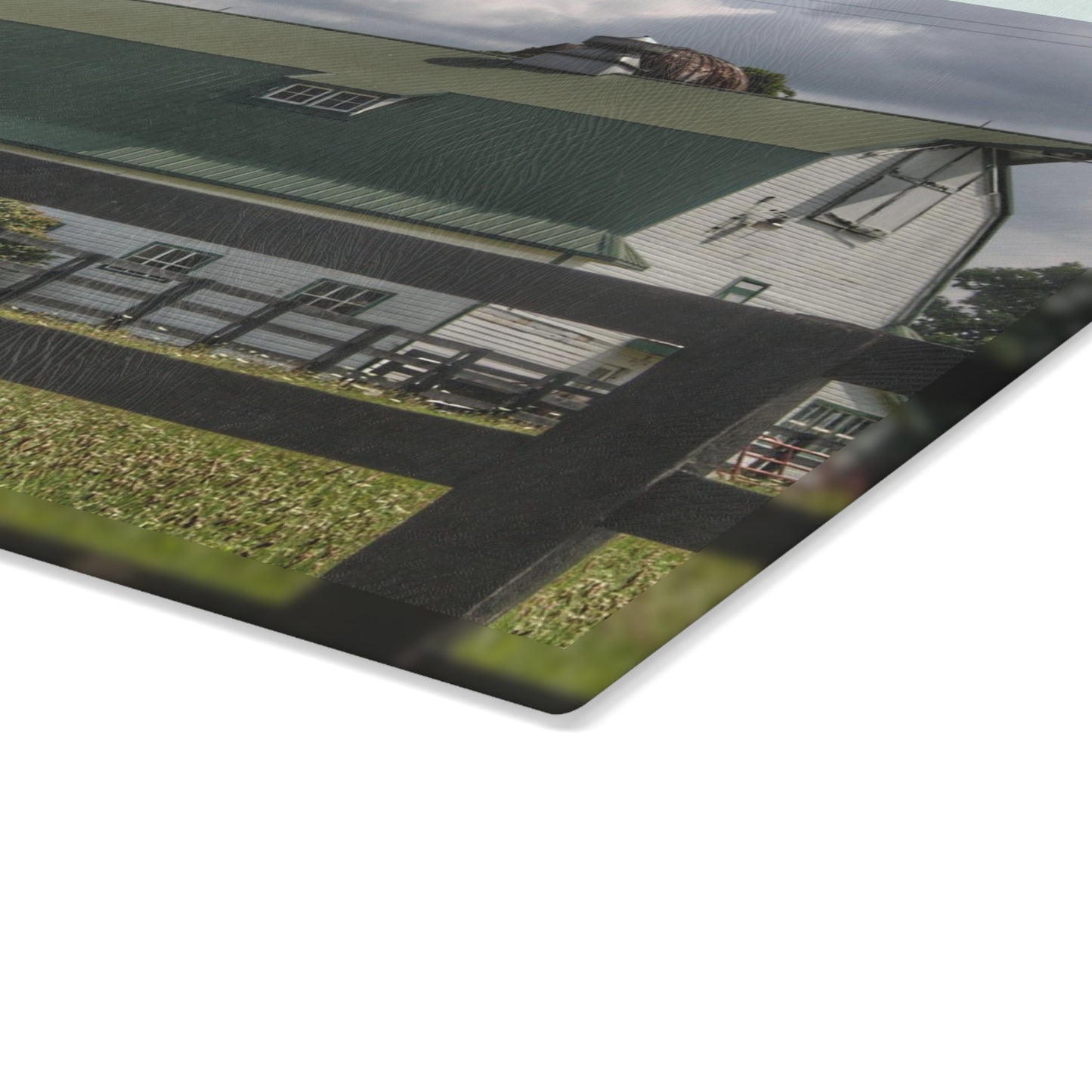 U R There Photography Clark Road White I Rustic Farmhouse Tempered-Glass Cutting Board