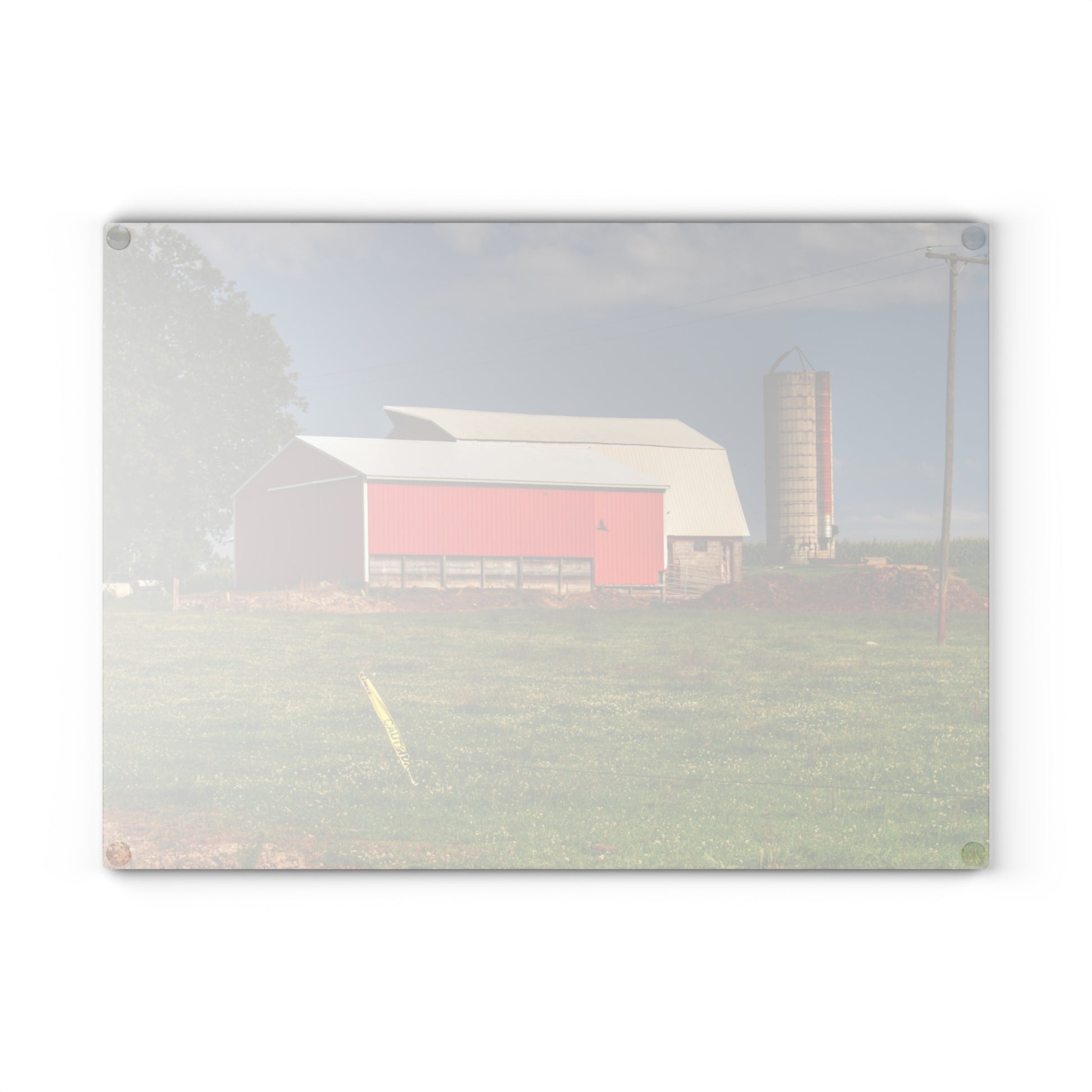 U R There Photography Clifford Farm and Silo Rustic Farmhouse Tempered-Glass Cutting Board
