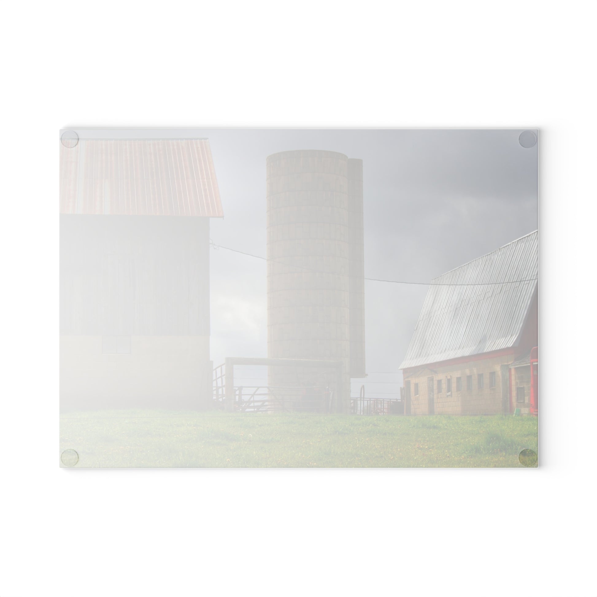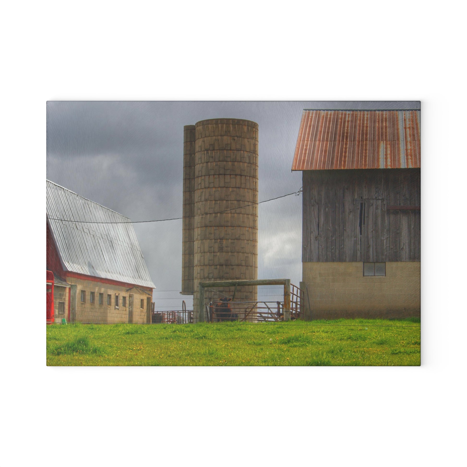 U R There Photography Clothier Road Grey and Silo Rustic Farmhouse Tempered-Glass Cutting Board