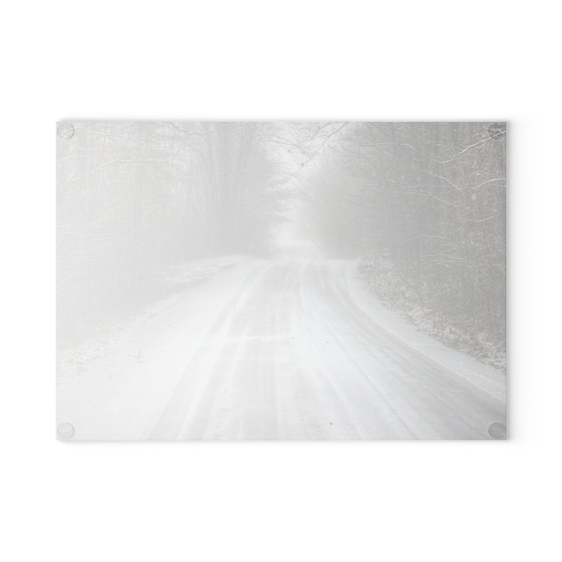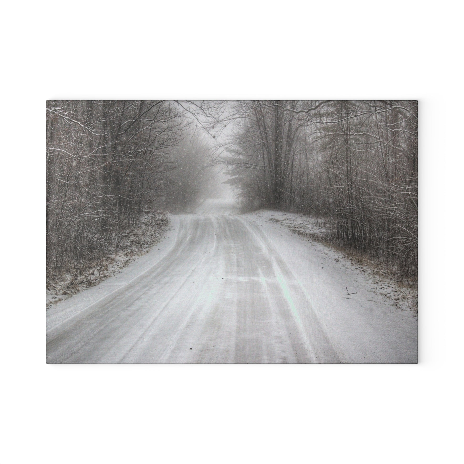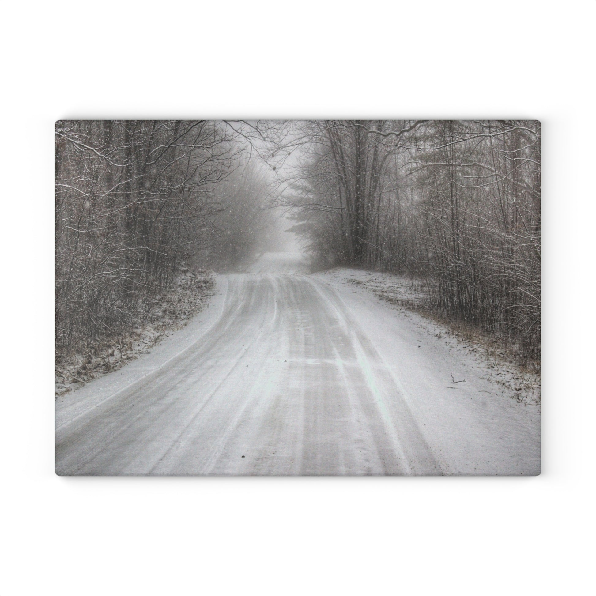 U R There Photography Cold Country Roads Rustic Farmhouse Tempered-Glass Cutting Board