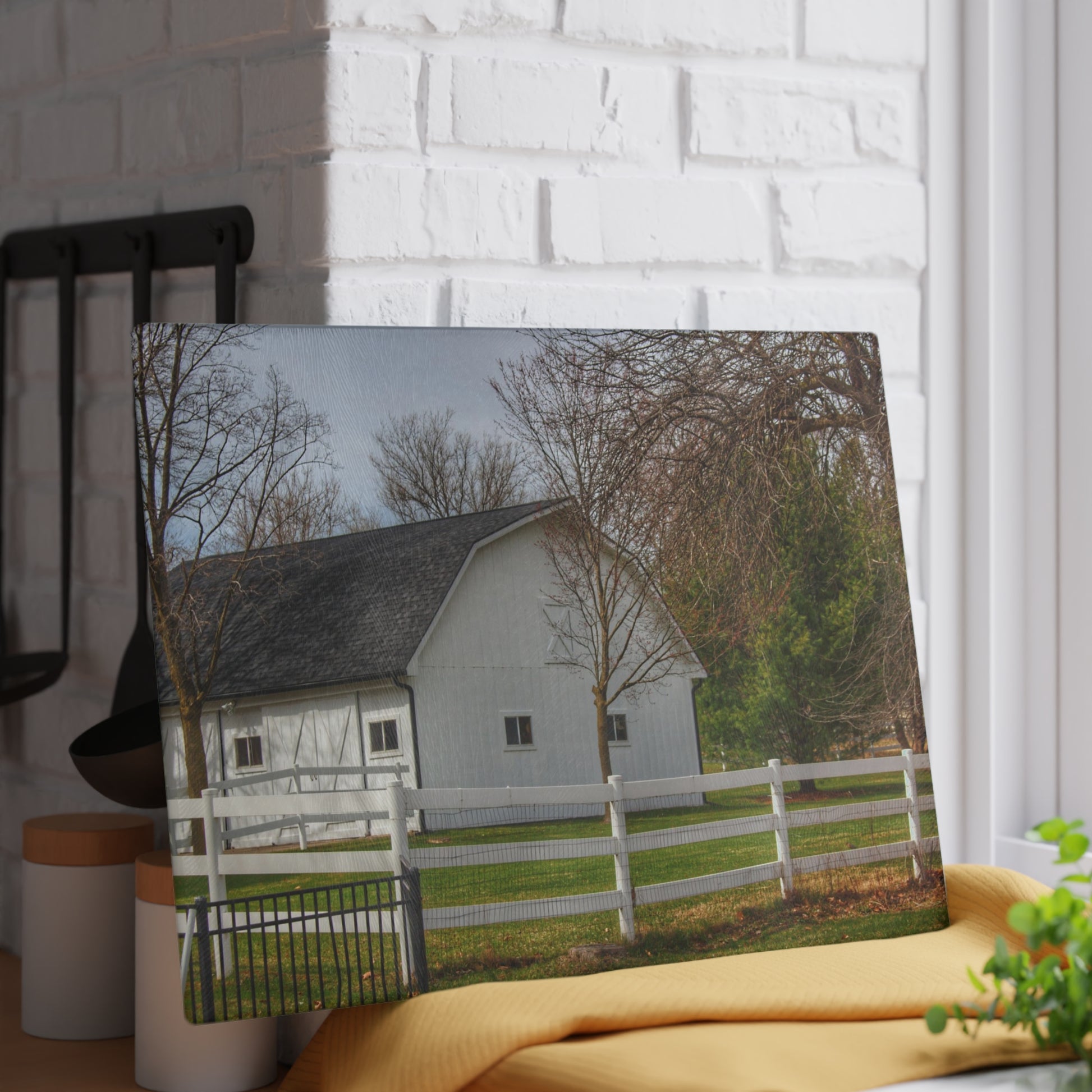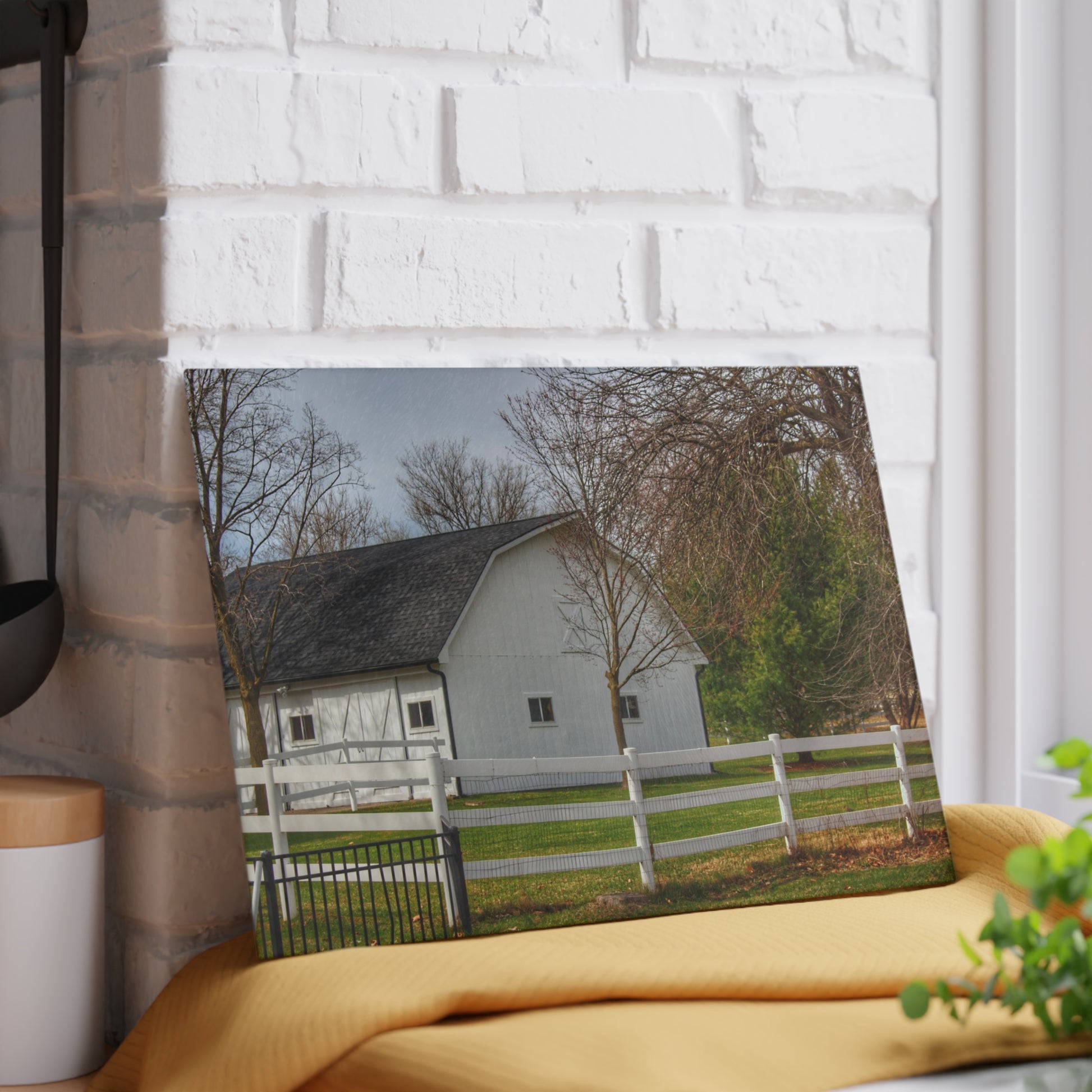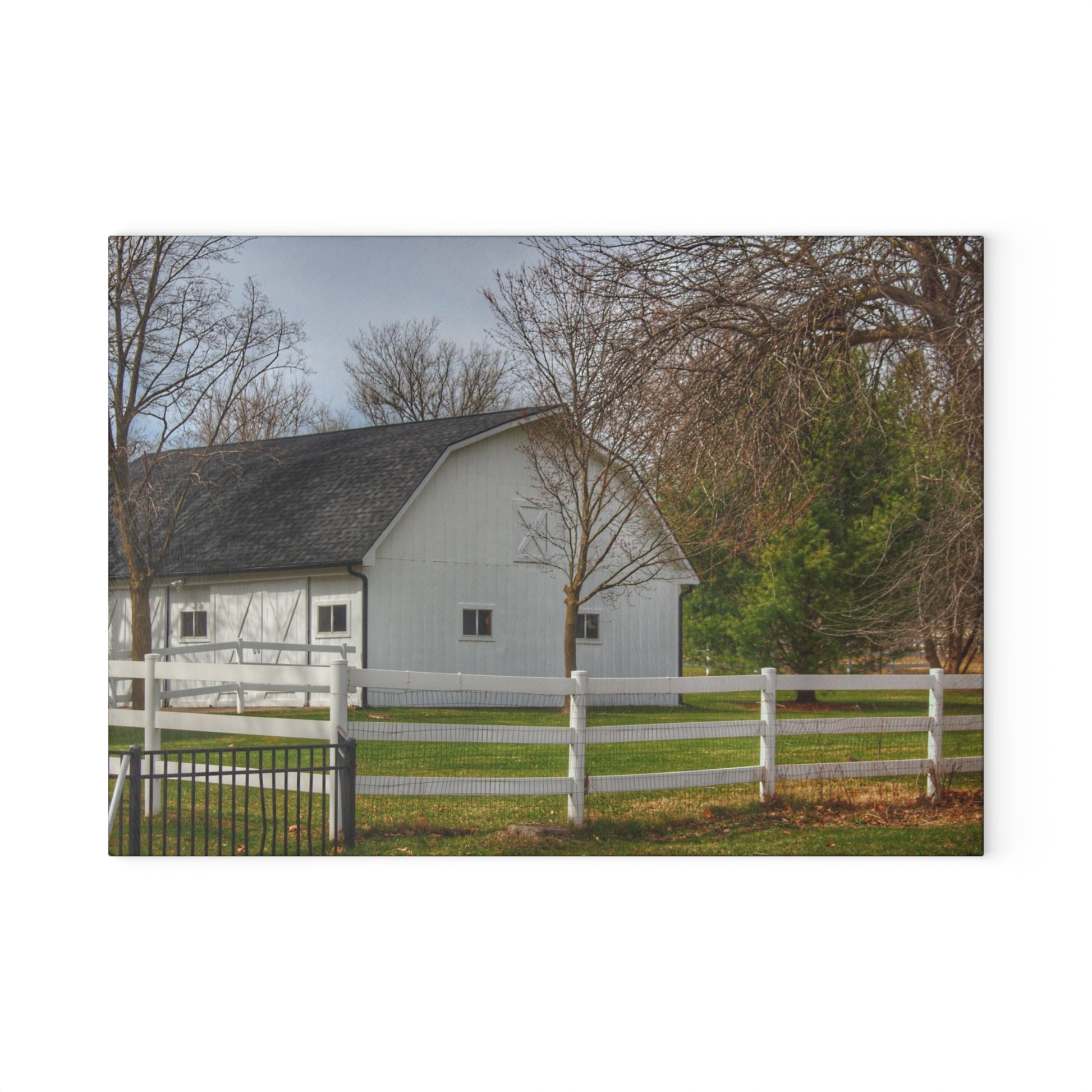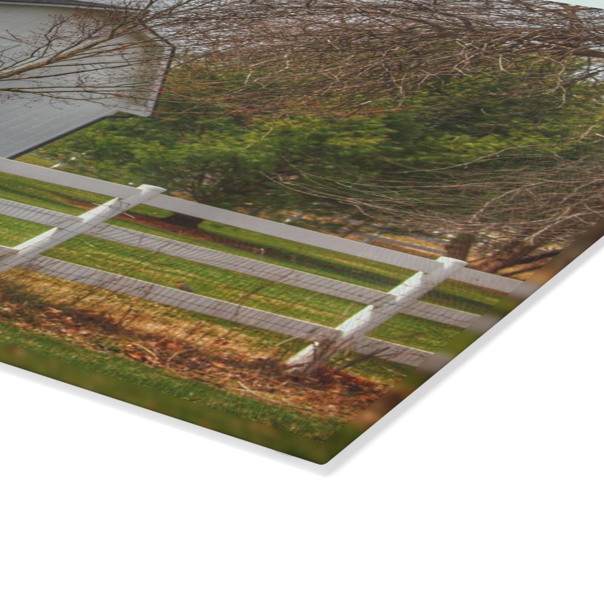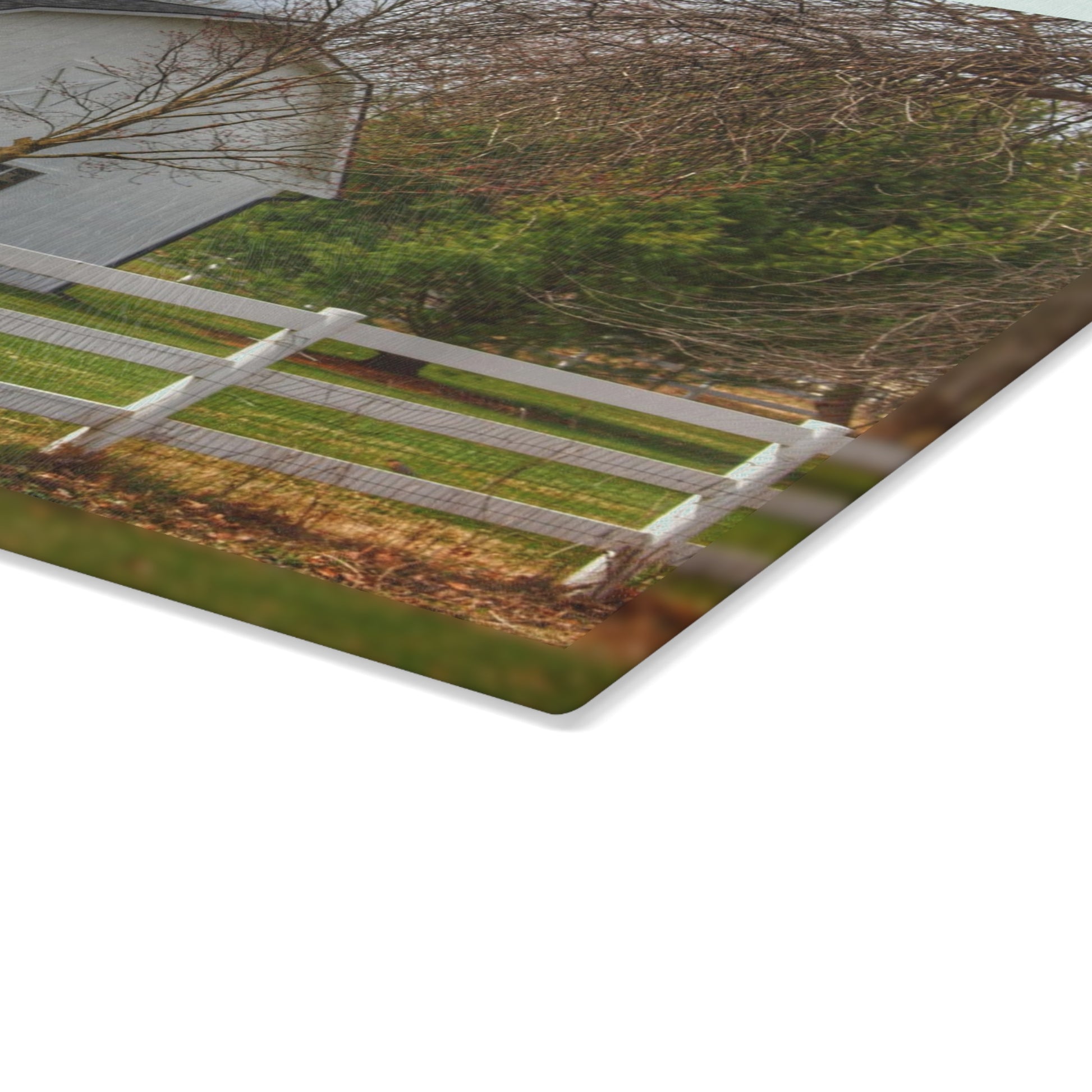 U R There Photography Collins Road White Rustic Farmhouse Tempered-Glass Cutting Board