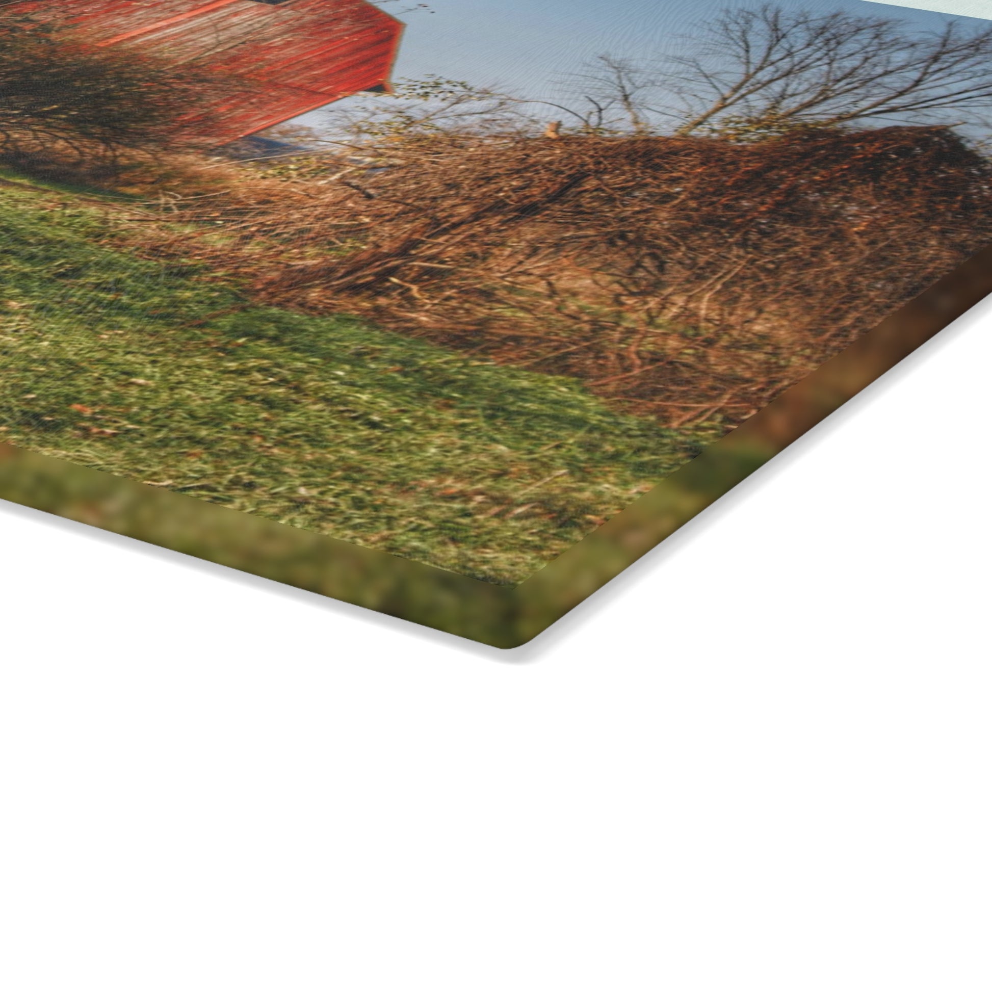 U R There Photography Columbiaville Red in November Rustic Farmhouse Tempered-Glass Cutting Board