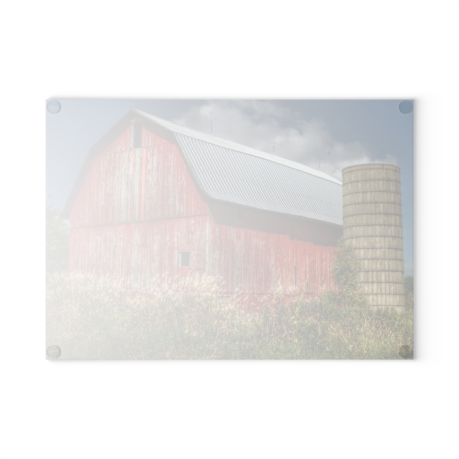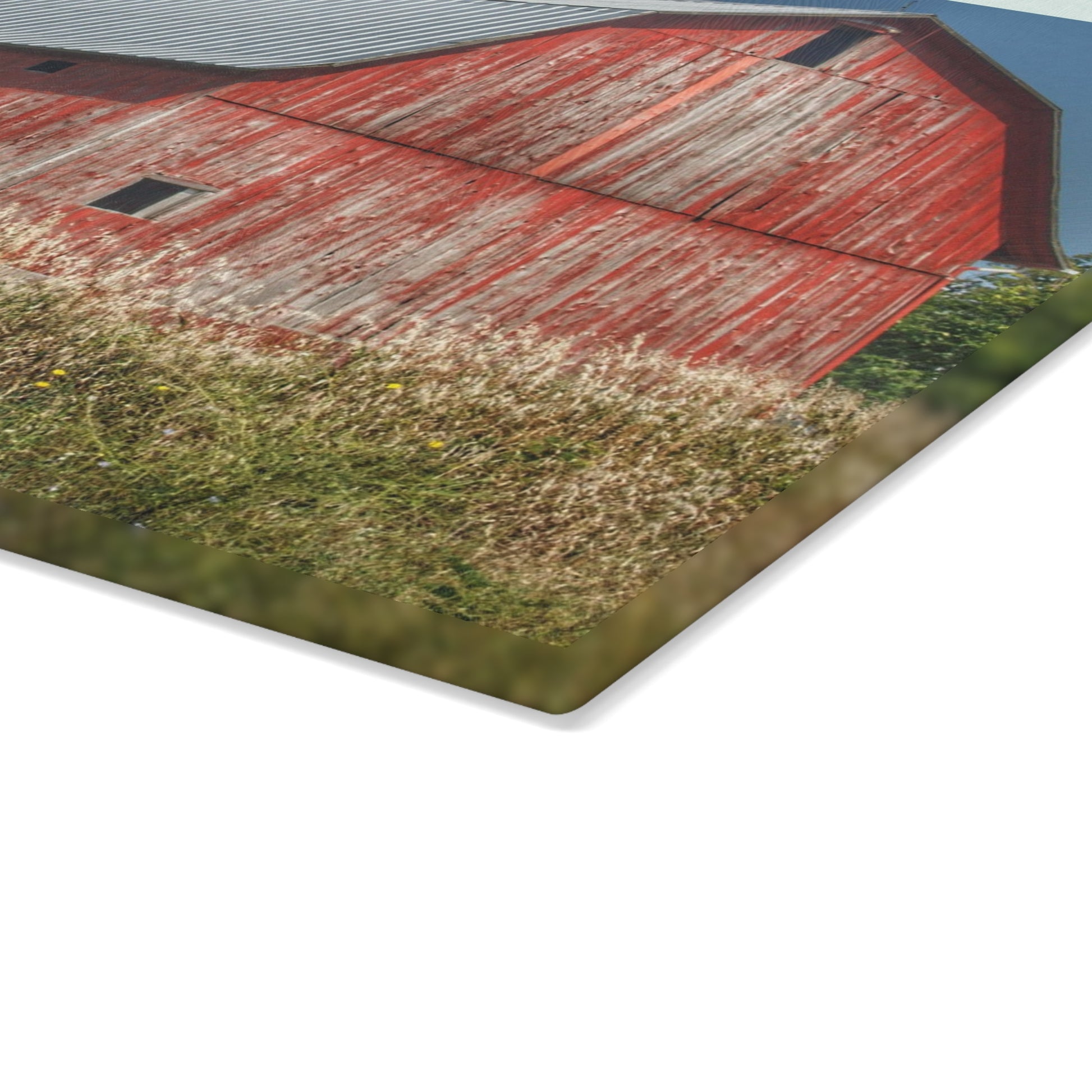 U R There Photography Columbiaville Red in Summer I Rustic Farmhouse Tempered-Glass Cutting Board
