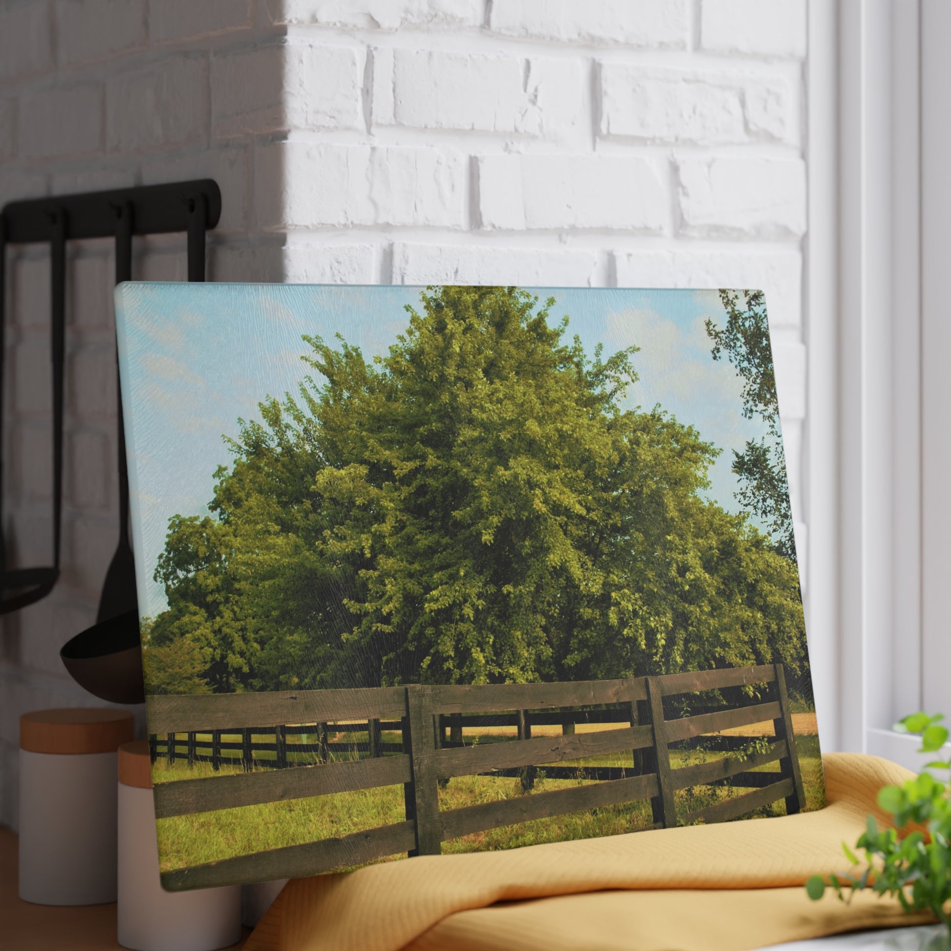 U R There Photography Country Fence and Tree in Metamora Rustic Farmhouse Tempered-Glass Cutting Board