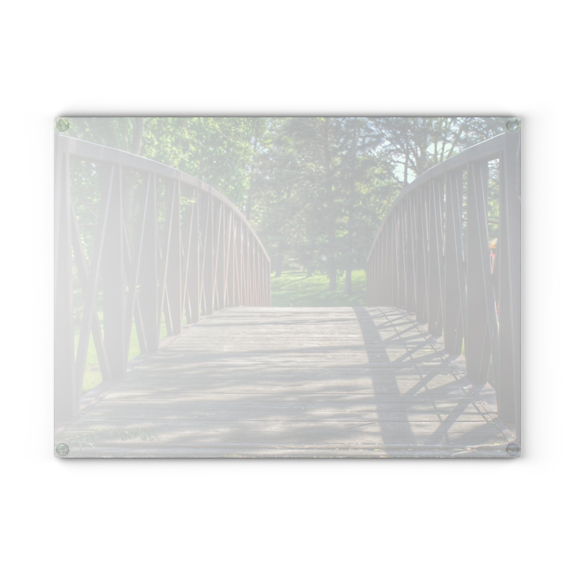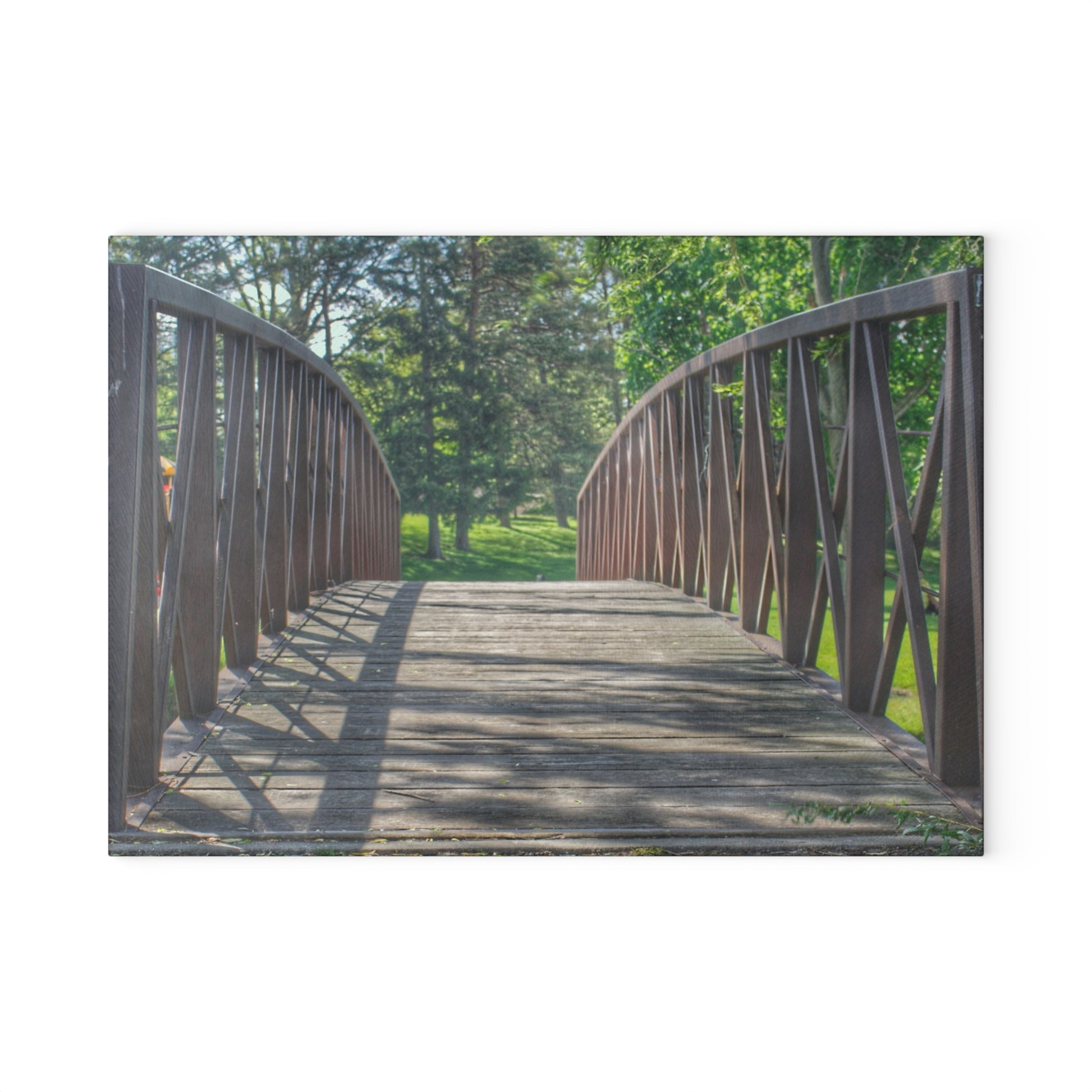 U R There Photography Cramton Park Kiwanis Bridge Rustic Farmhouse Tempered-Glass Cutting Board
