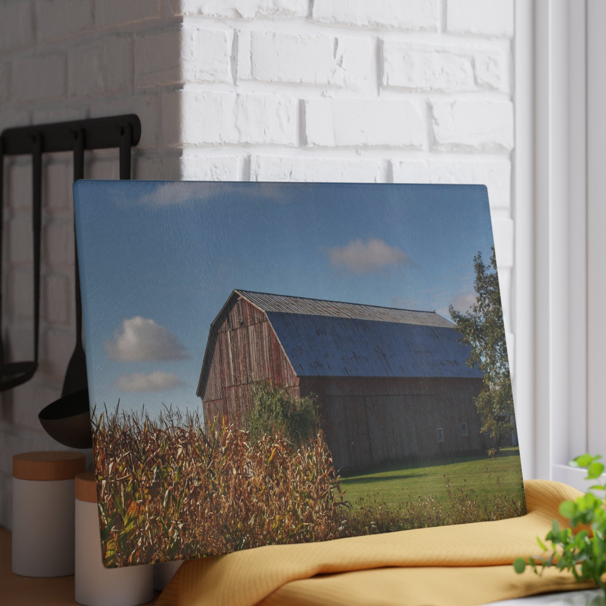 U R There Photography Croswell Fargo Road Red Rustic Farmhouse Tempered-Glass Cutting Board