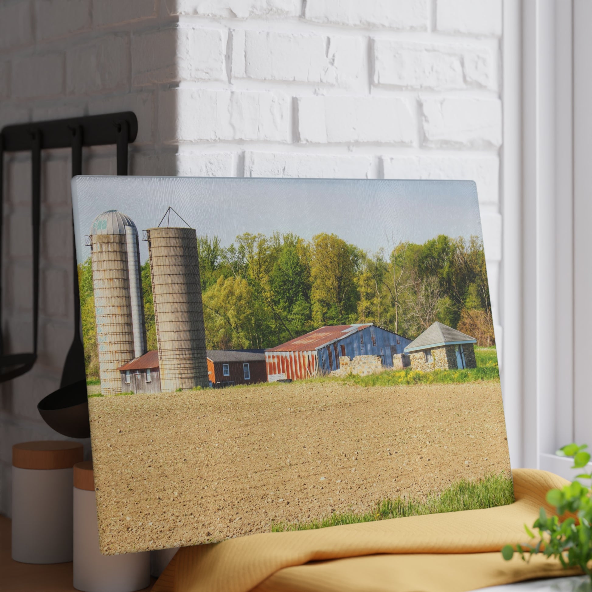 U R There Photography Deckerville Rusted Red Shack Rustic Farmhouse Tempered-Glass Cutting Board