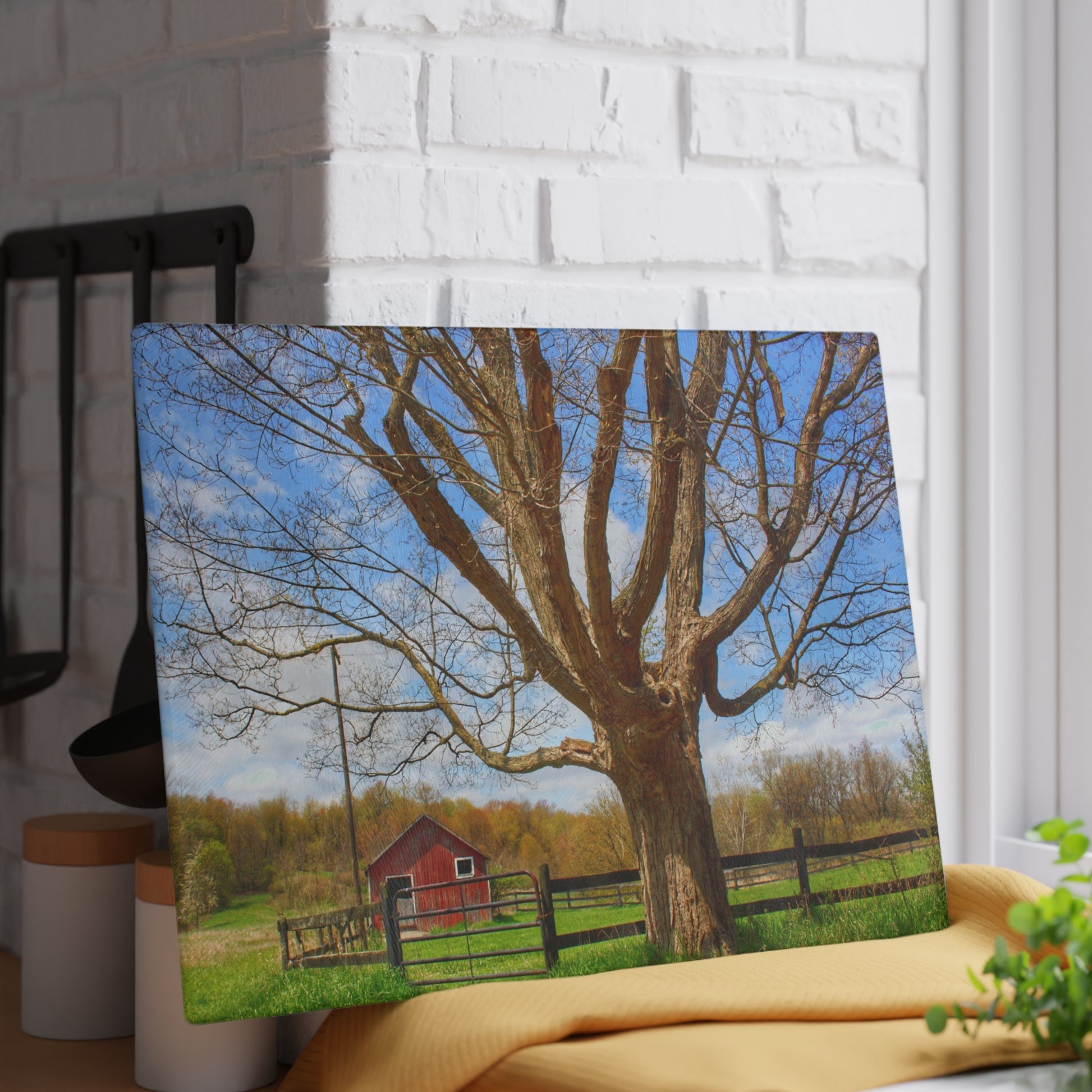 U R There Photography Delano Oak and Little Red Rustic Farmhouse Tempered-Glass Cutting Board