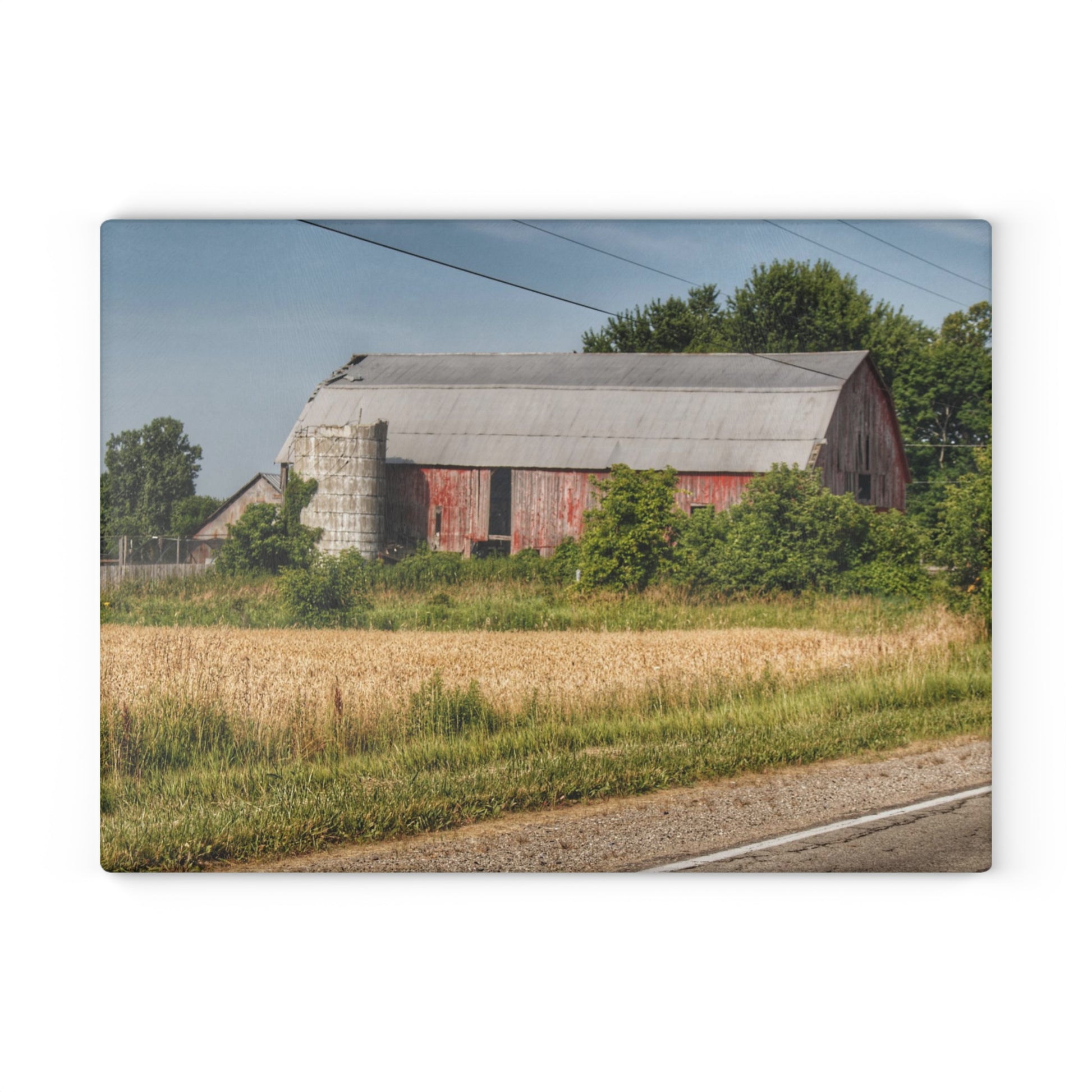 U R There Photography Dodge Road Old Red Rustic Farmhouse Tempered-Glass Cutting Board