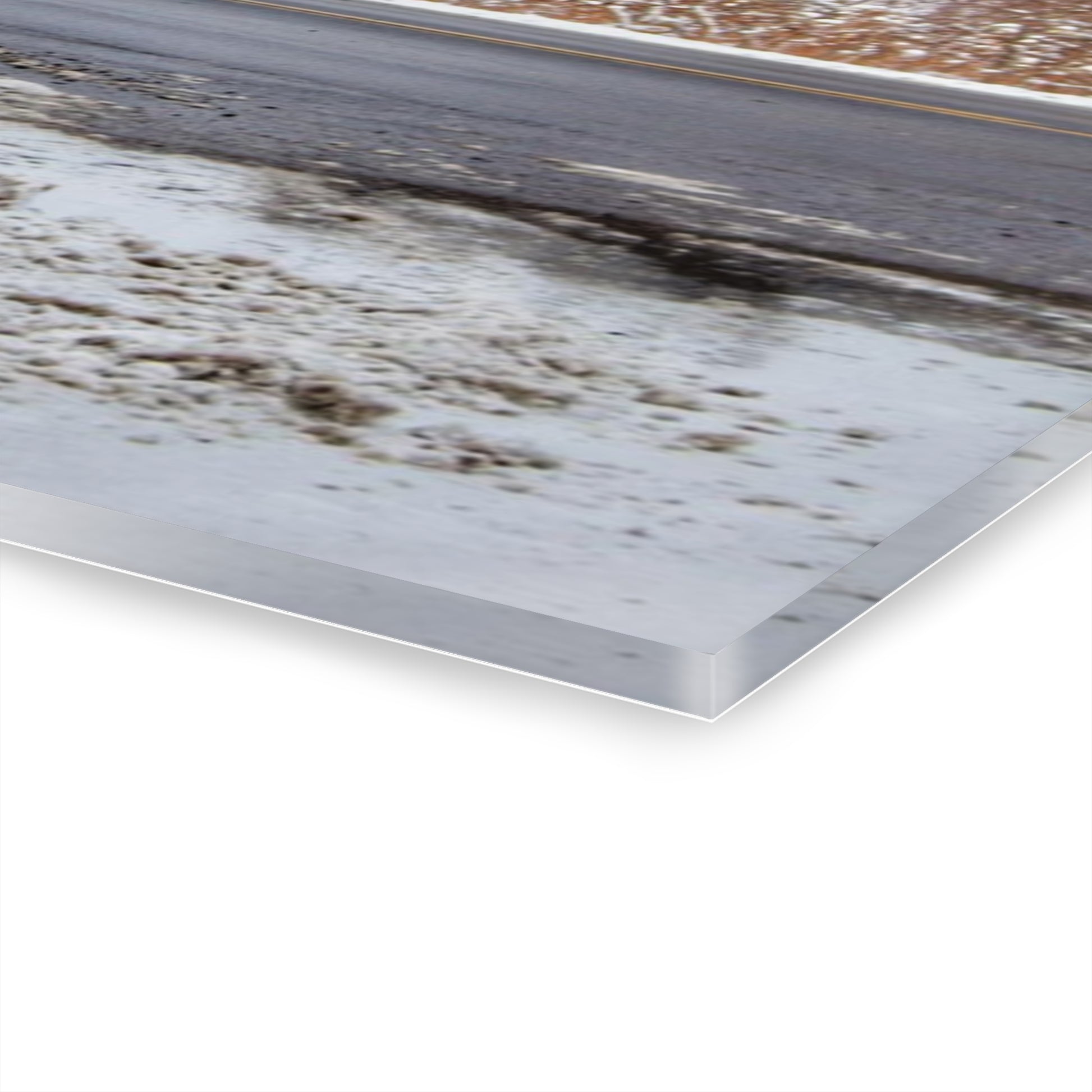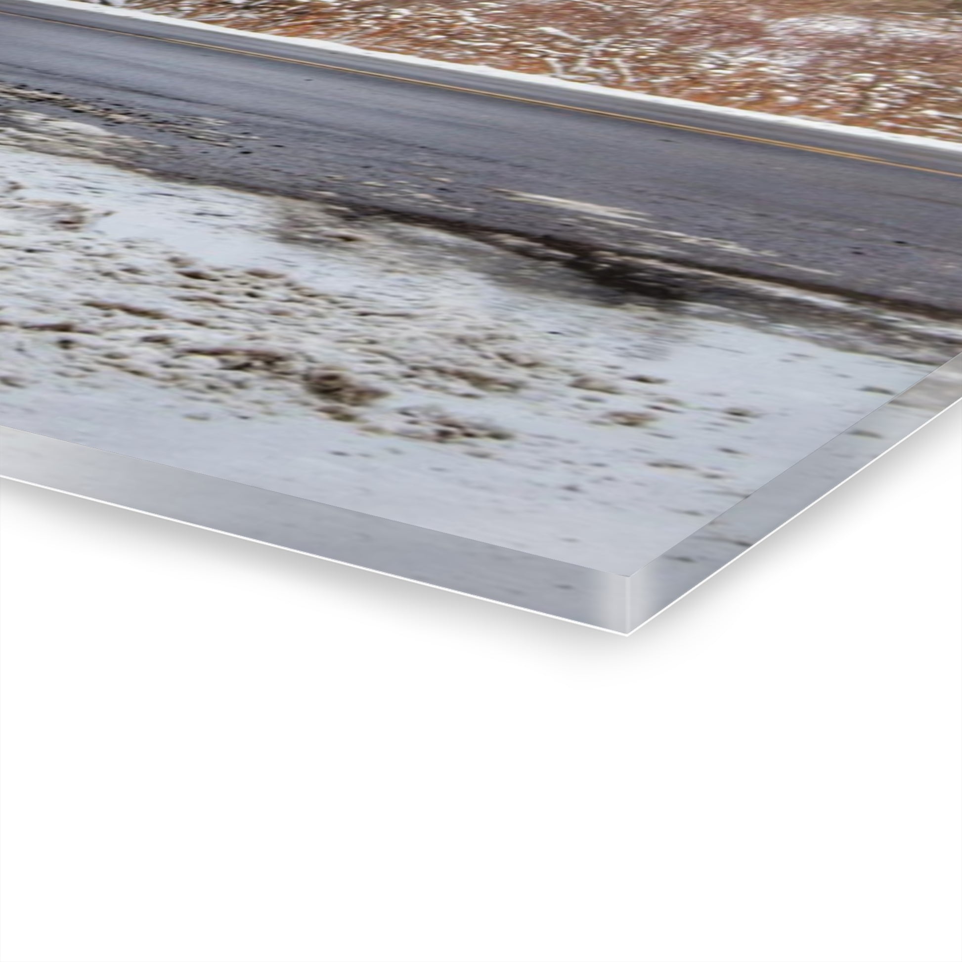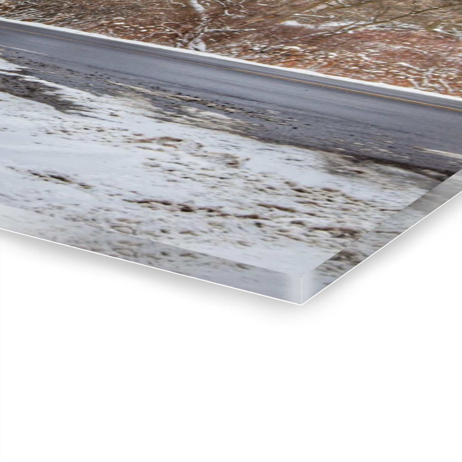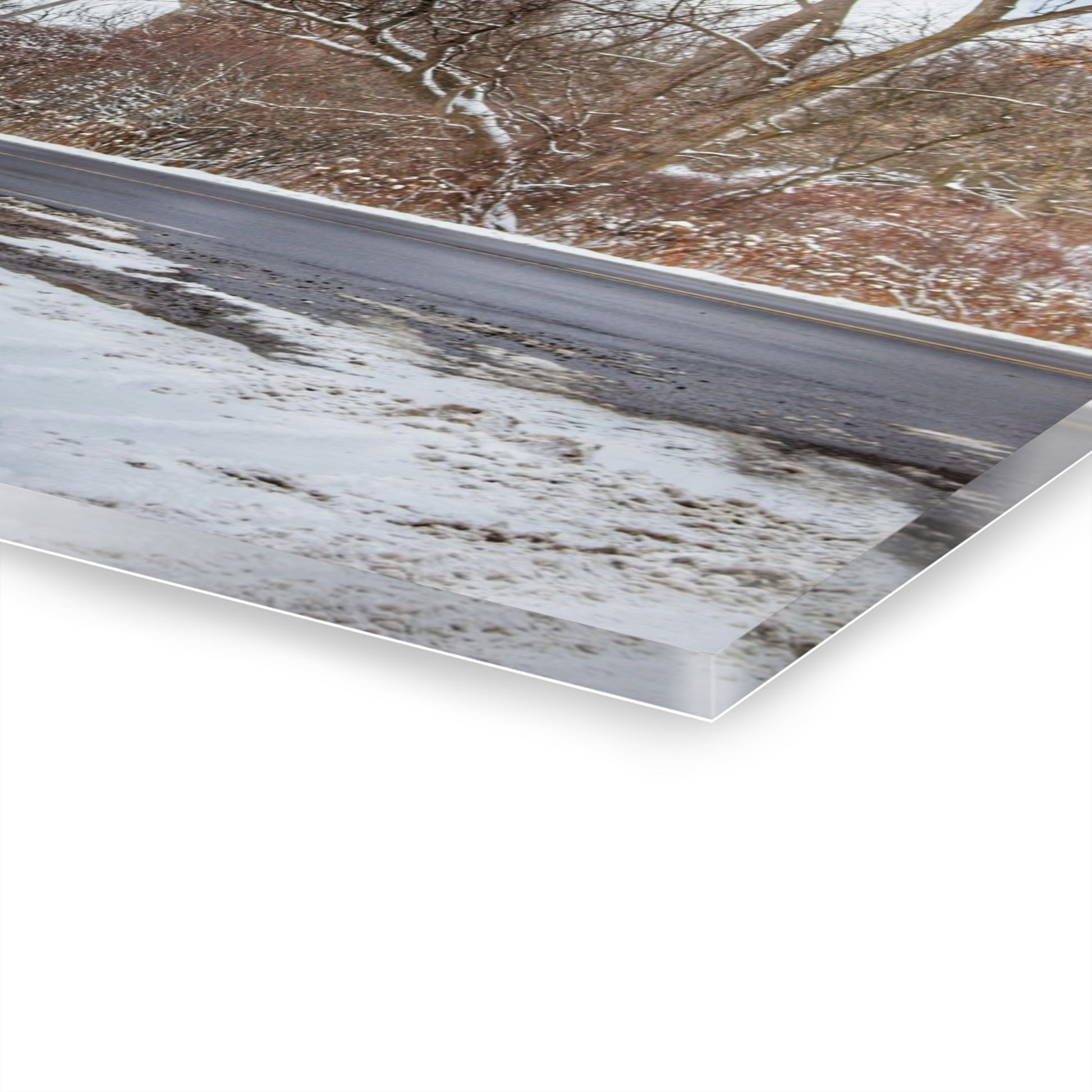 U R There Photography Dodge Road Winter Red Rustic Farmhouse Acrylic Wall Print