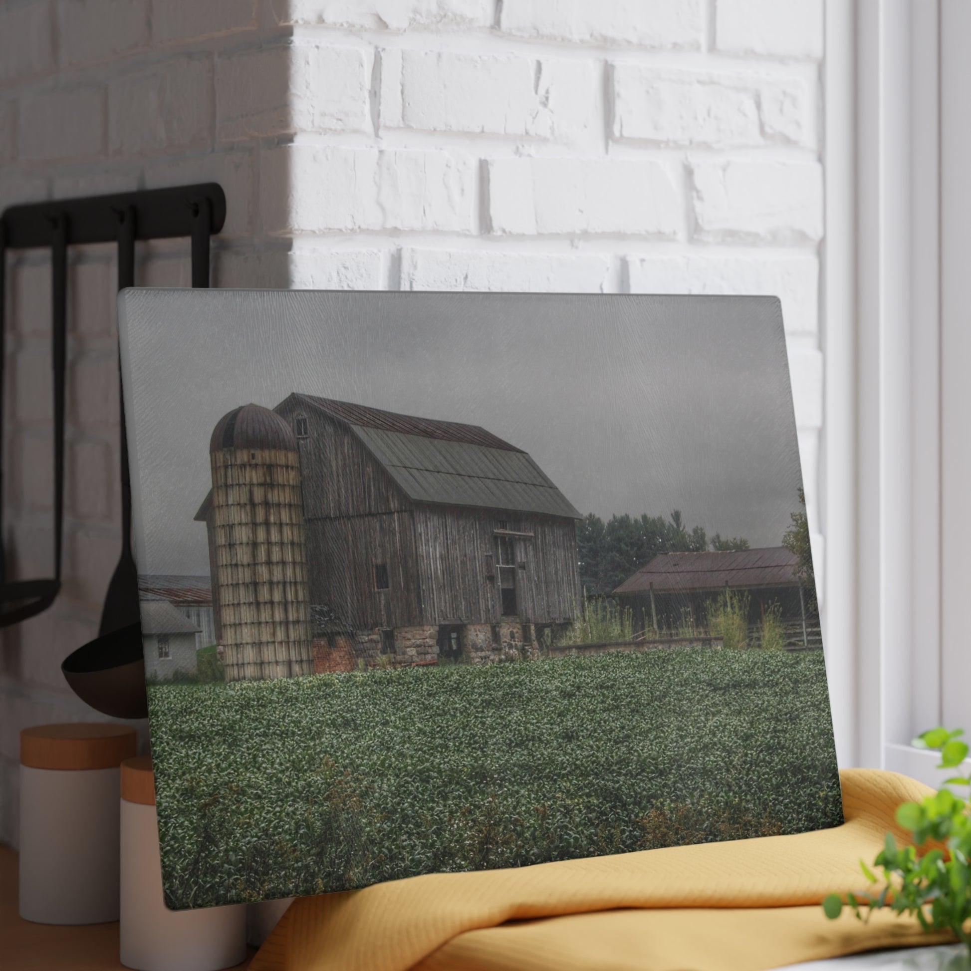 U R There Photography East Millington Road Grey and Stable Rustic Farmhouse Tempered-Glass Cutting Board