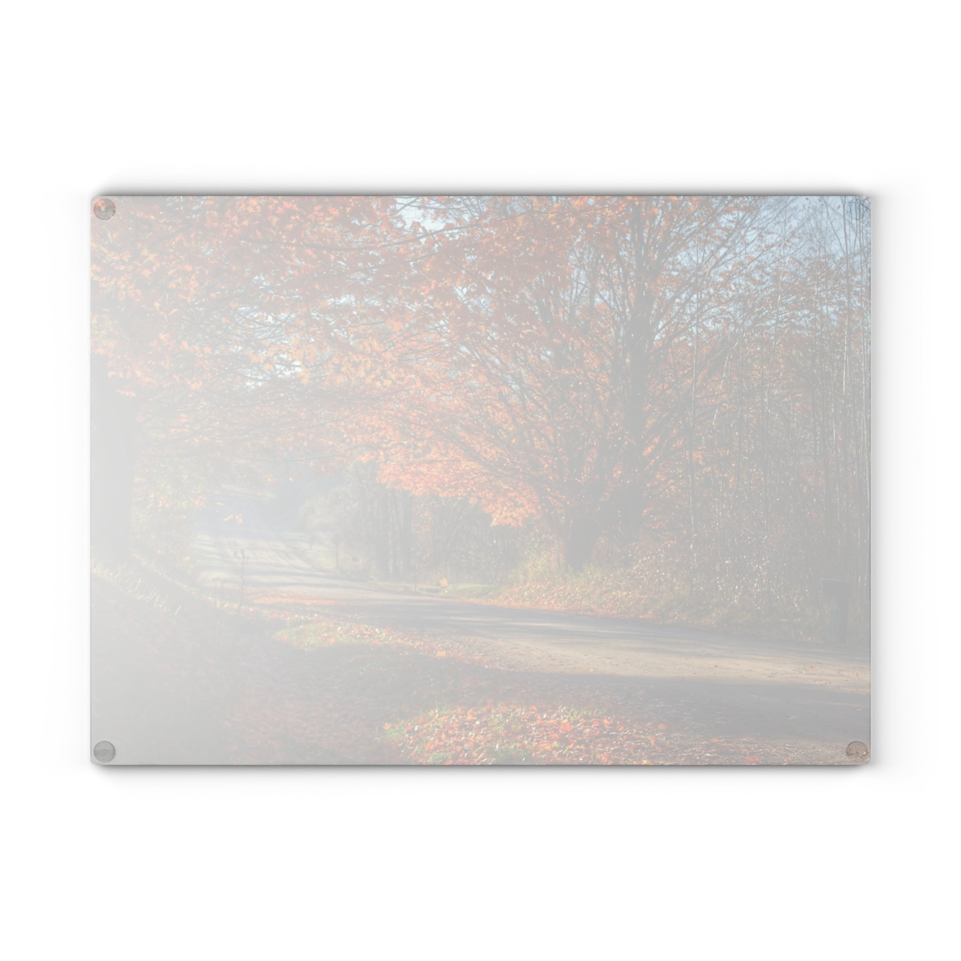 U R There Photography Fall on Oak Road Rustic Farmhouse Tempered-Glass Cutting Board