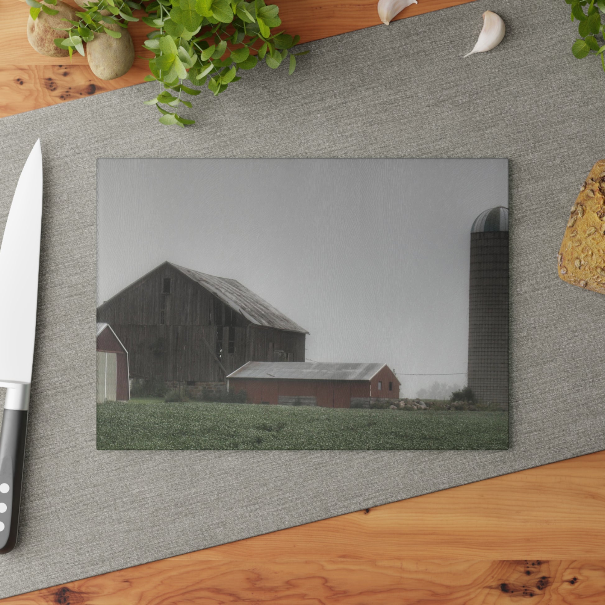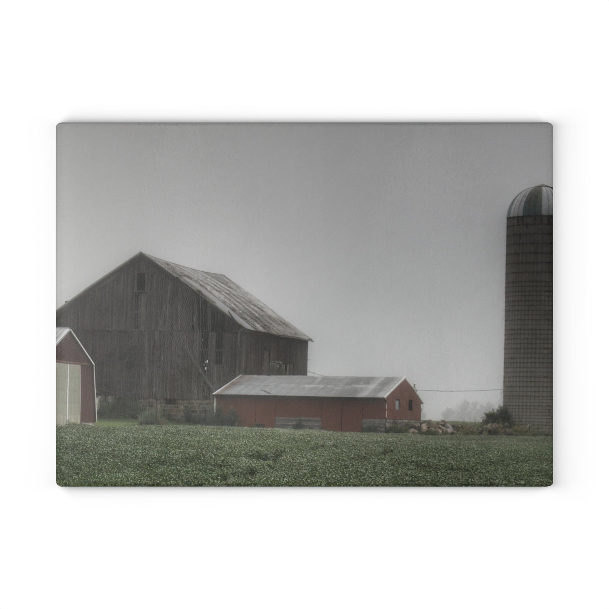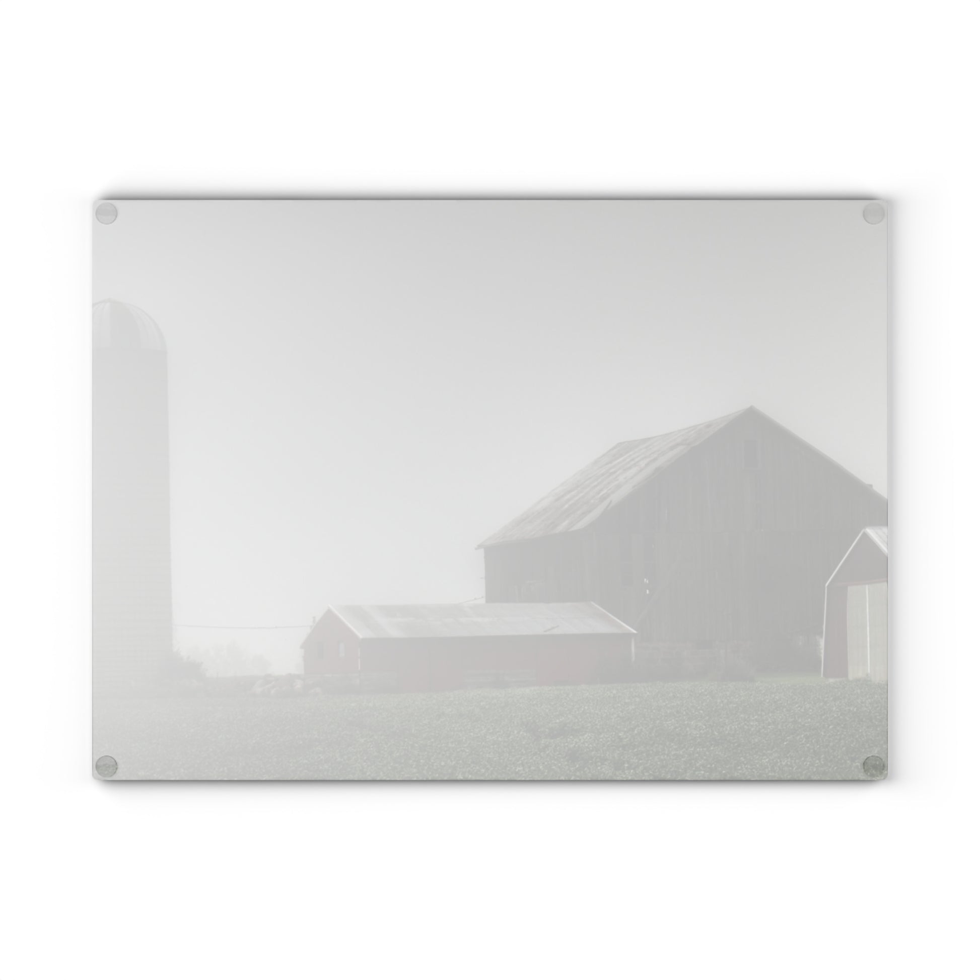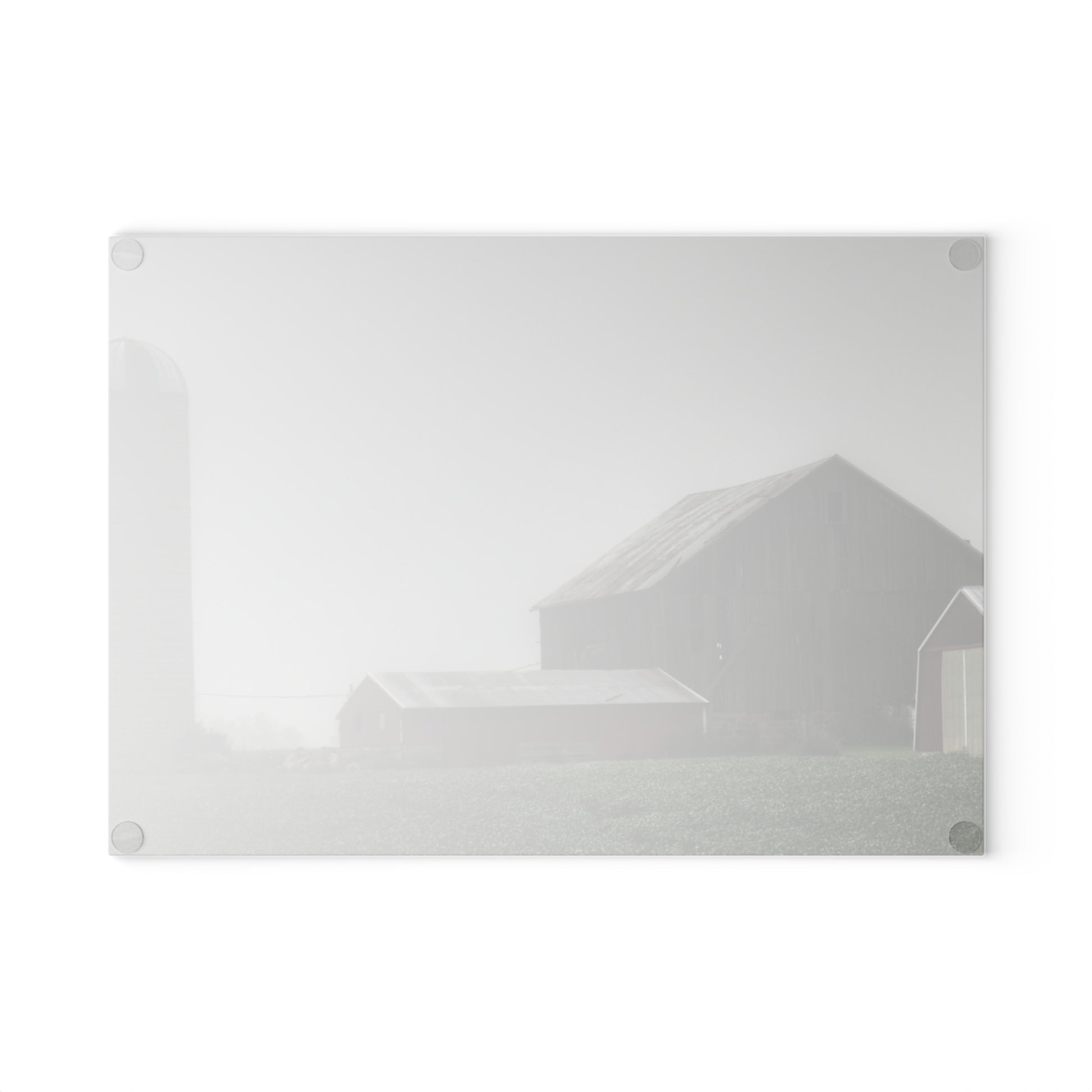 U R There Photography Farm in the Fog Rustic Farmhouse Tempered-Glass Cutting Board